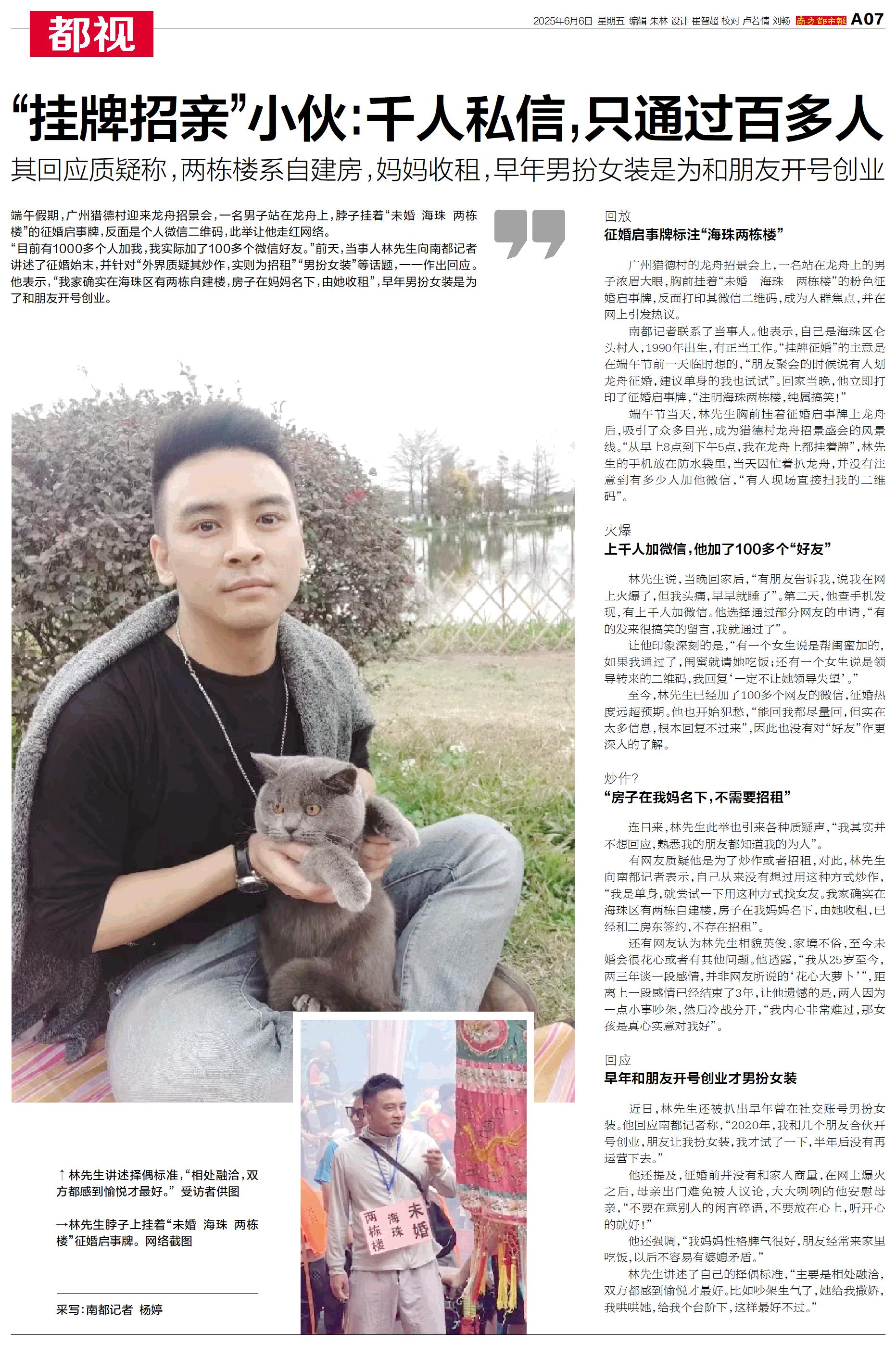 “挂牌招亲”小伙:千人私信,只通过百多人