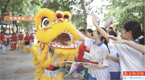 6月6日,广州大学附属中学为高三学子举行了高燃的高考壮行仪式。现场热舞、醒狮、擂鼓声声,祝福不断。家长盛装高举吉祥寓意的应援物甘蔗(掂过碌蔗)、金蕉(今朝)、粽子(高中)加入到壮行的队伍,为学子加油鼓劲。