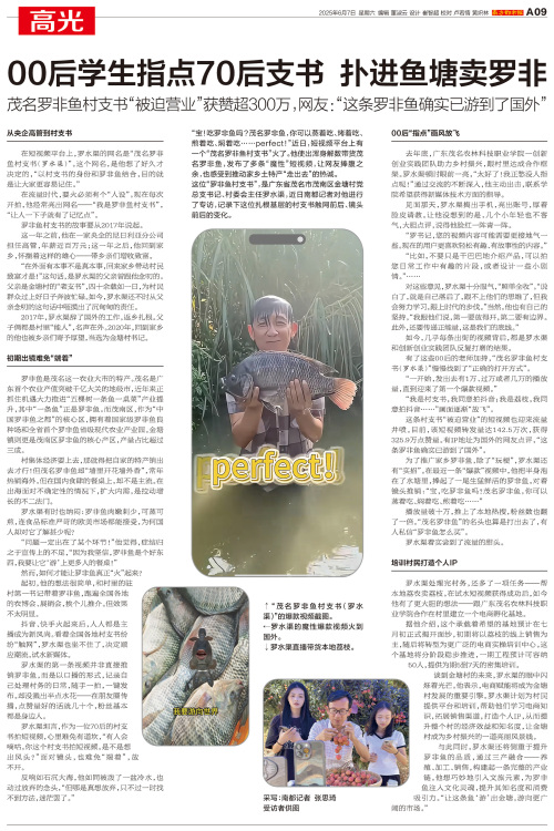 “宝!吃罗非鱼吗?茂名罗非鱼,你可以蒸着吃、烤着吃、煎着吃、焖着吃……perfect!”近日,短视频平台上有一个“茂名罗非鱼村支书”火了。