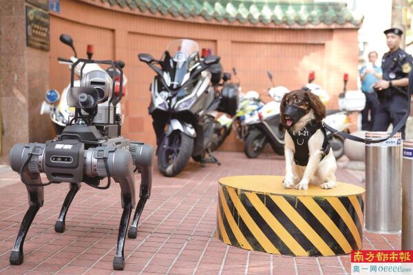 在广州市培正中学考点外,越秀公安出动特警和警用机械警犬护航,祝各位考生金榜题名、旗开得胜。据介绍,该考点有两只警犬护考,一只是史宾格,一只是警用机械警犬,机械警犬在播放“越秀公安祝各位考生金榜题名、旗开得胜,加油。”越秀公安分局巡特警大队特警中队民警朱嘉健介绍,小型犬一般负责搜查工作,机械狗负责日常治安的时候可以做到实时监控,反馈到指挥中心进行相应的指挥和警力调度。
