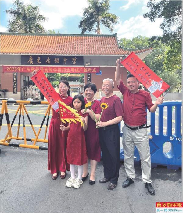 广雅中学考点外,来自海珠的考生一家集体来送考。