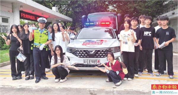 惠州市惠艺艺术职业高级中学,考生和车牌尾号为985的警车合影。