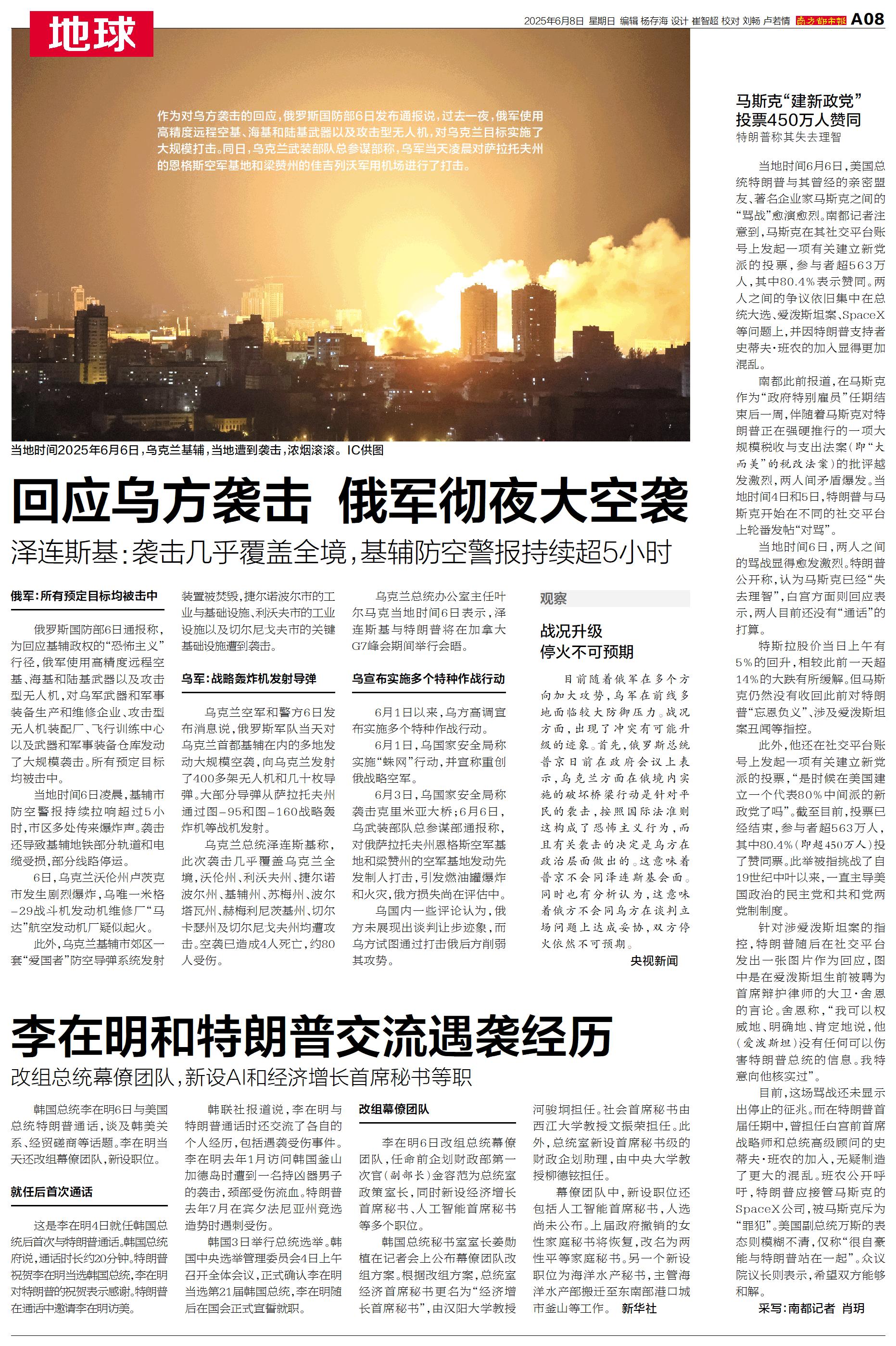作为对乌方袭击的回应,俄罗斯国防部6日发布通报说,过去一夜,俄军使用高精度远程空基、海基和陆基武器以及攻击型无人机,对乌克兰目标实施了大规模打击。