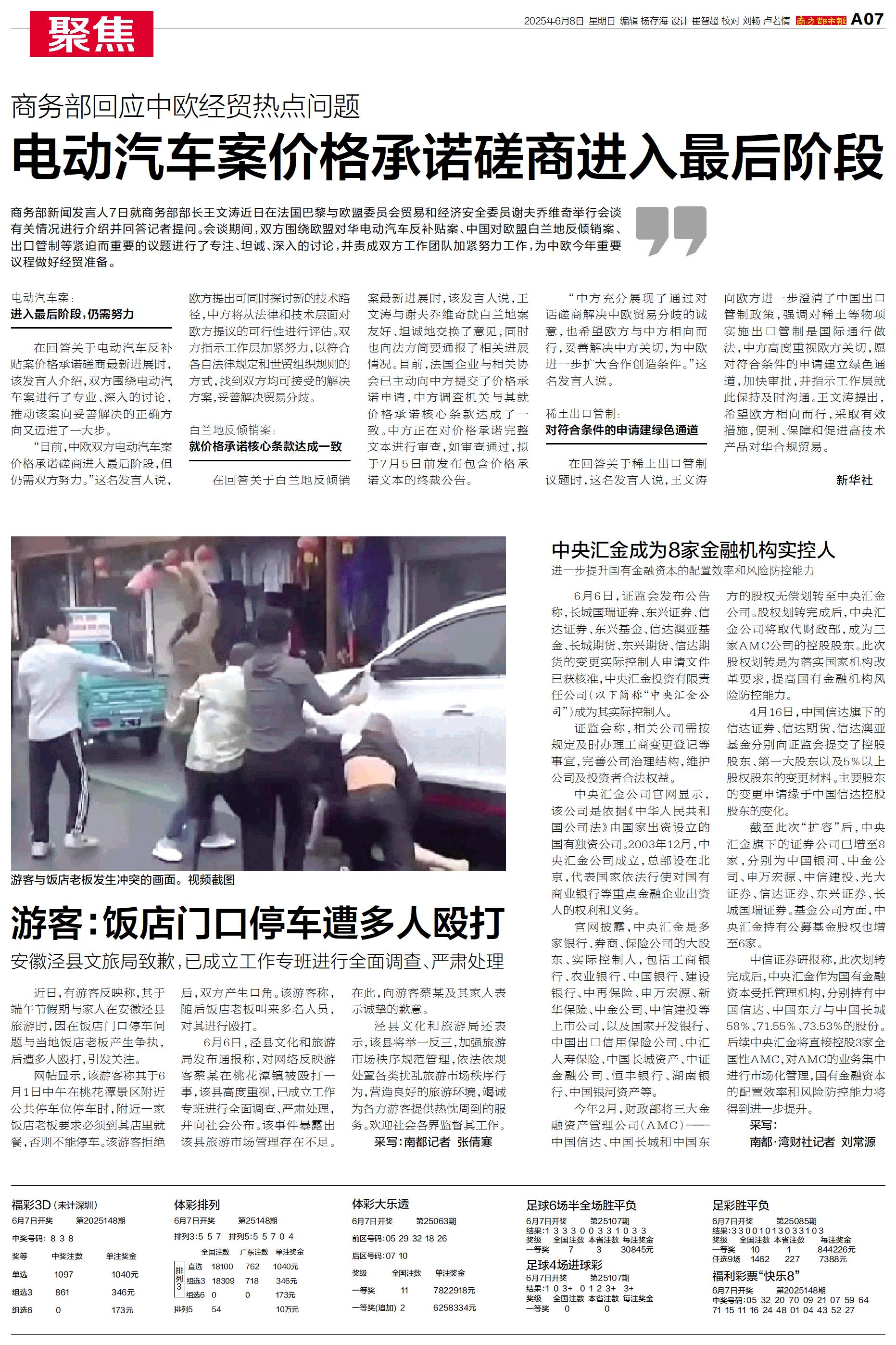 商务部新闻发言人7日就商务部部长王文涛近日在法国巴黎与欧盟委员会贸易和经济安全委员谢夫乔维奇举行会谈有关情况进行介绍并回答记者提问。