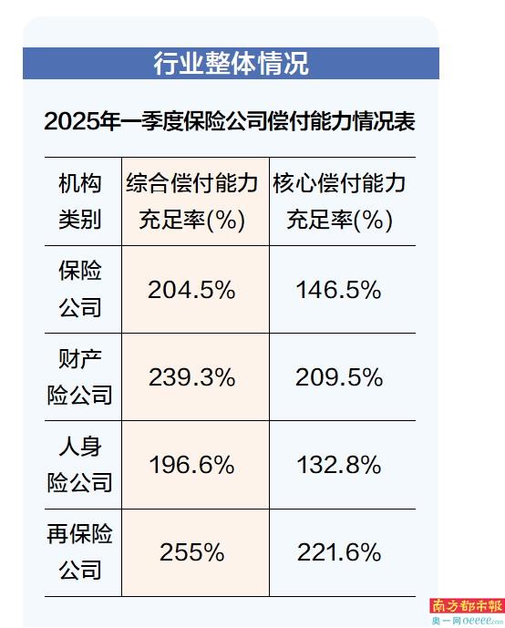 据国家金融监督管理总局数据,2025年一季度末,保险公司综合偿付能力充足率为204.5%,核心偿付能力充足率为146.5%,均远高于监管红线。