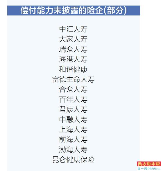 瑞众人寿(原华夏人寿),中汇人寿(原天安人寿),海港人寿(原恒大人寿)则是由于过渡原因,监管豁免披露偿付率。和谐健康保险因为风险处置,暂缓披露,官网显示,其最新偿付能力仍停留在2017年。