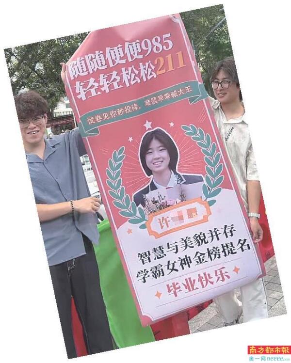 “随随便便985,轻轻松松211”“试卷见你秒投降,难题乖乖喊大王。”执信中学考点外,一幅诙谐有趣的易拉宝十分吸睛,这是考生许同学的两位哥哥特意从外省赶来为迎接妹妹准备的“接考仪式”。“感觉非常惊喜,之前哥哥说过,但没想到真的会有。”许同学说。