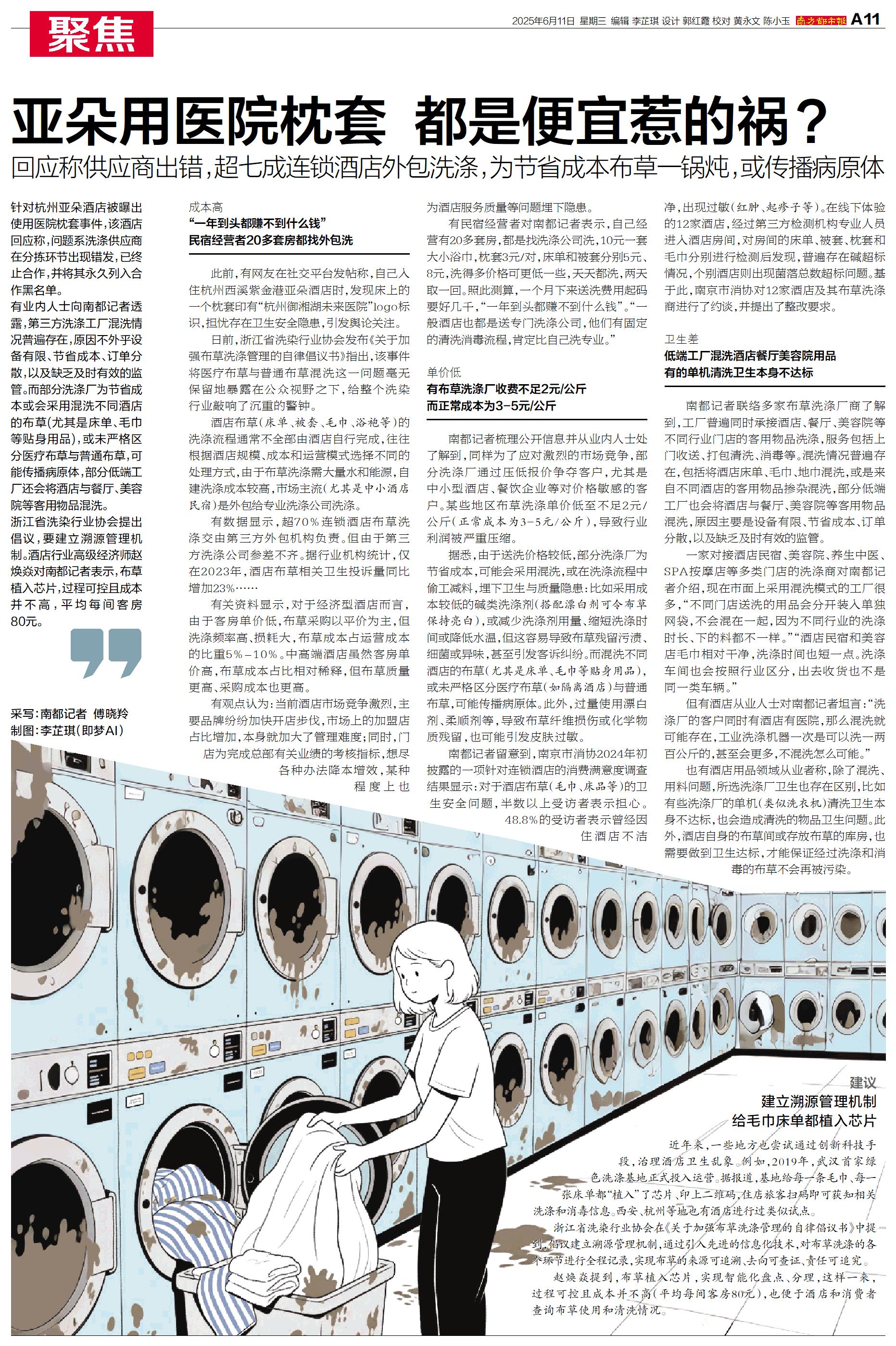浙江省洗染行业协会提出倡议,要建立溯源管理机制。酒店行业高级经济师赵焕焱对南都记者表示,布草植入芯片,过程可控且成本并不高,平均每间客房80元。