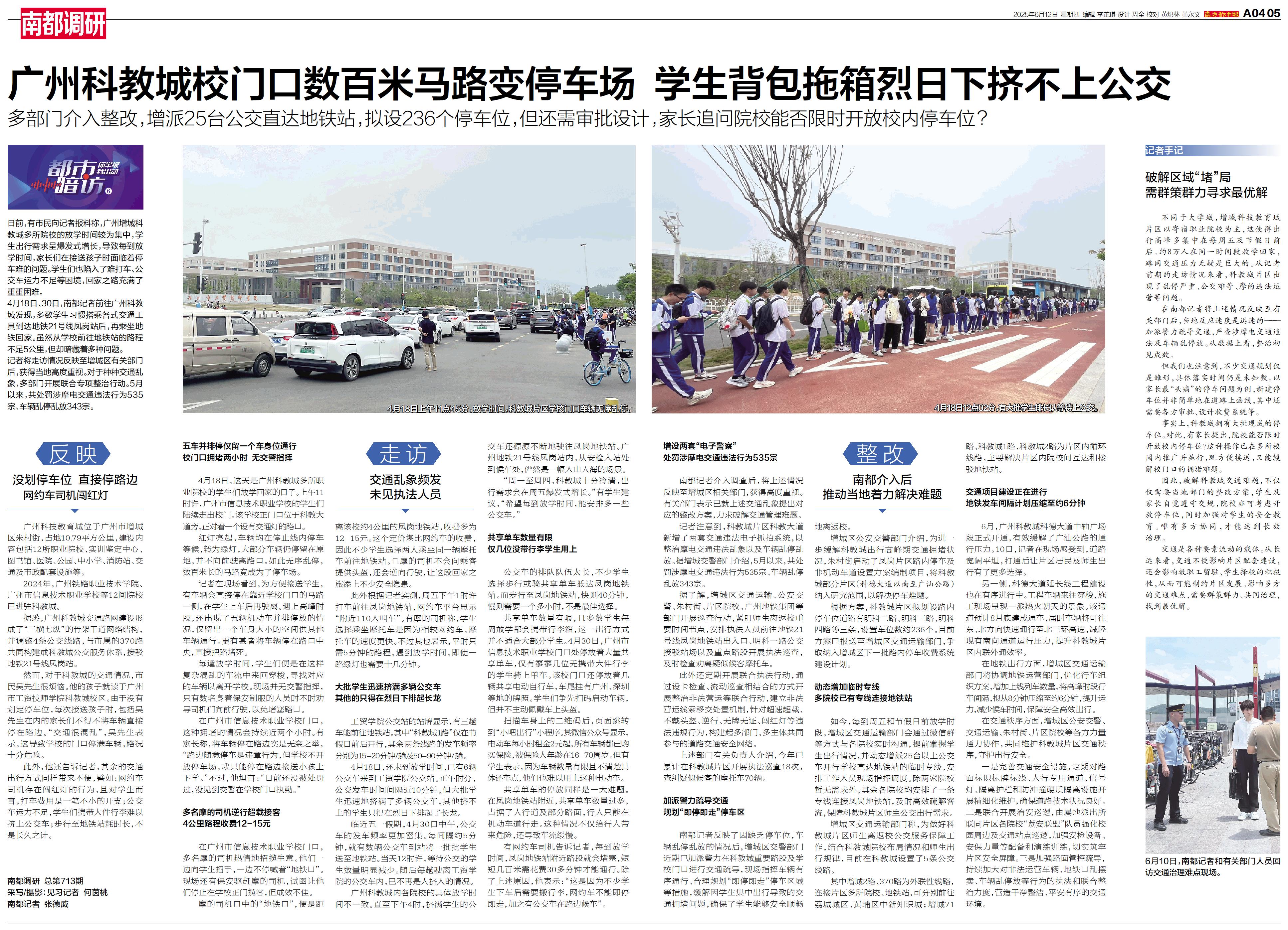 日前,有市民向记者报料称,广州增城科教城多所院校的放学时间较为集中,学生出行需求呈爆发式增长,导致每到放学时间,家长们在接送孩子时面临着停车难的问题。