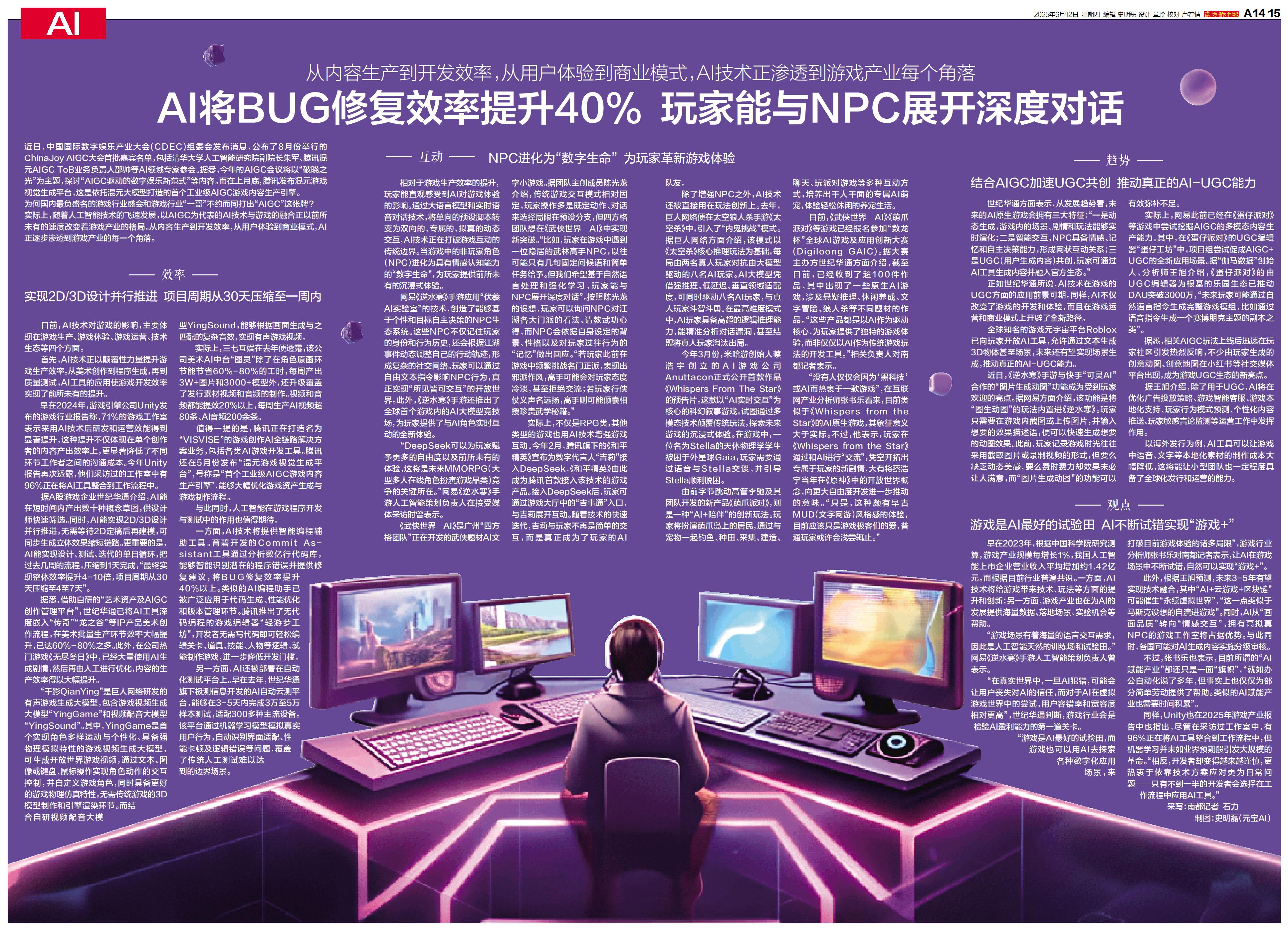 AI将BUG修复效率提升40% 玩家能与NPC展开深度对话