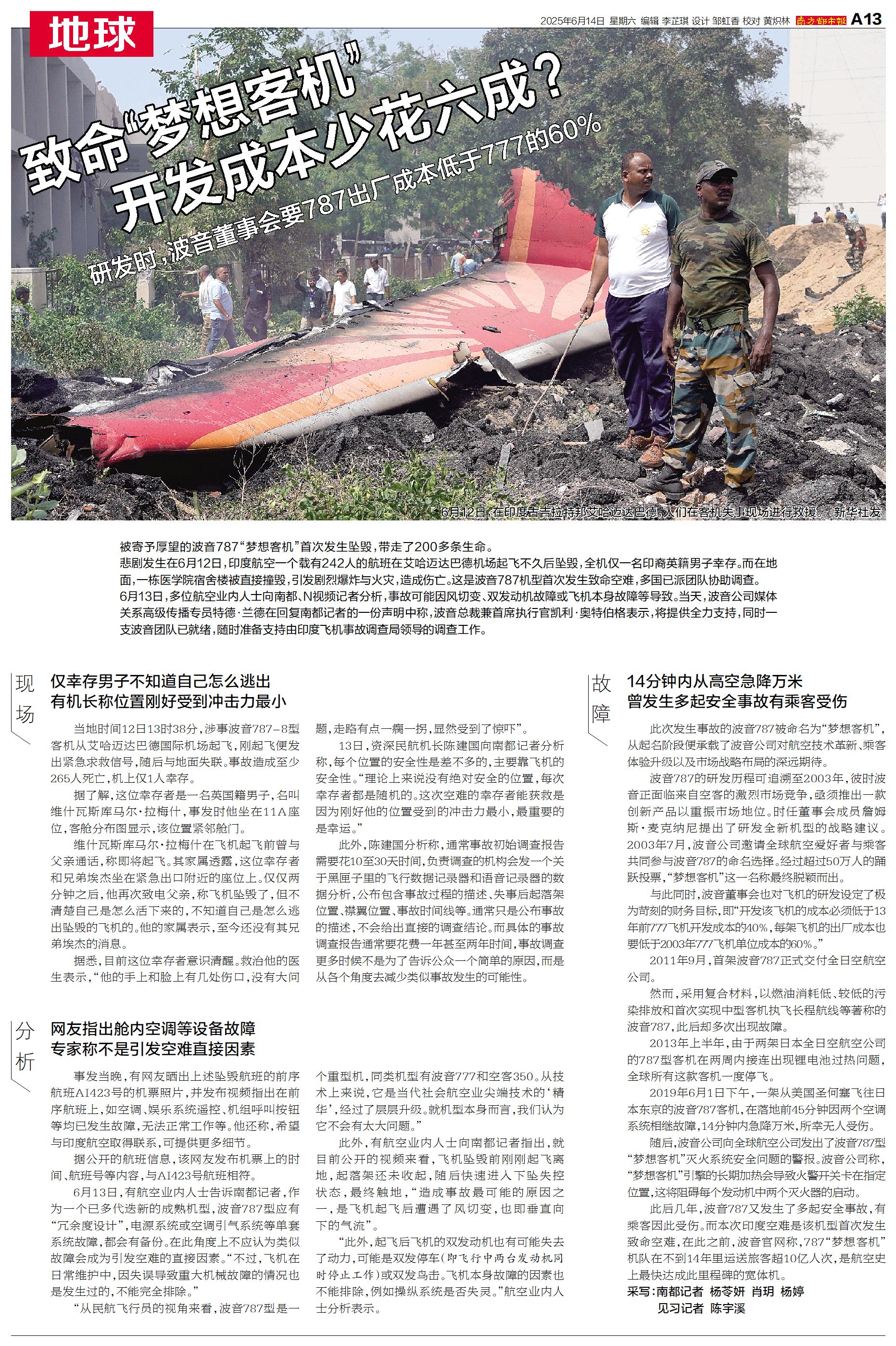 被寄予厚望的波音787“梦想客机”首次发生坠毁,带走了200多条生命。