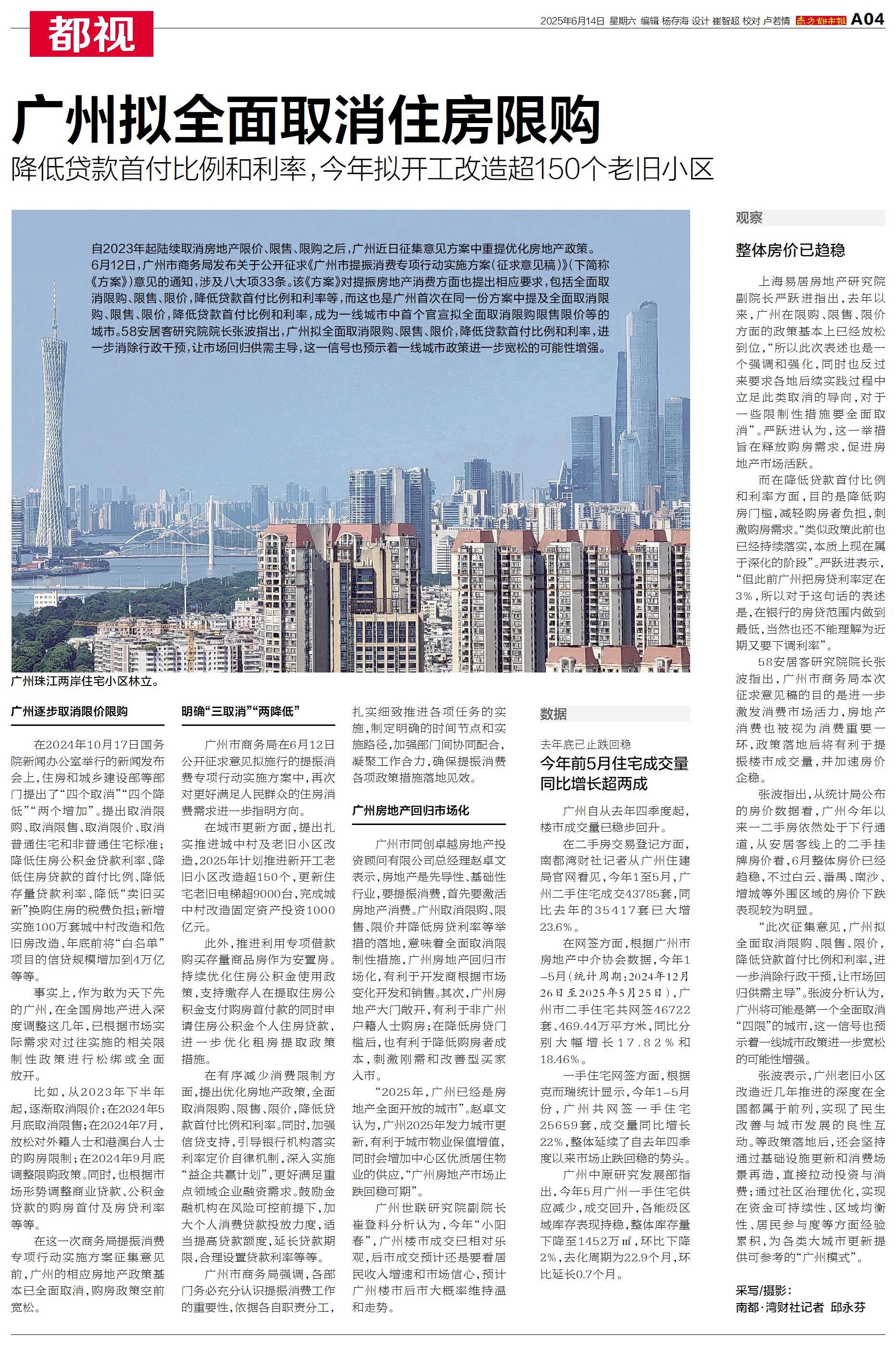 自2023年起陆续取消房地产限价、限售、限购之后,广州近日征集意见方案中重提优化房地产政策。
