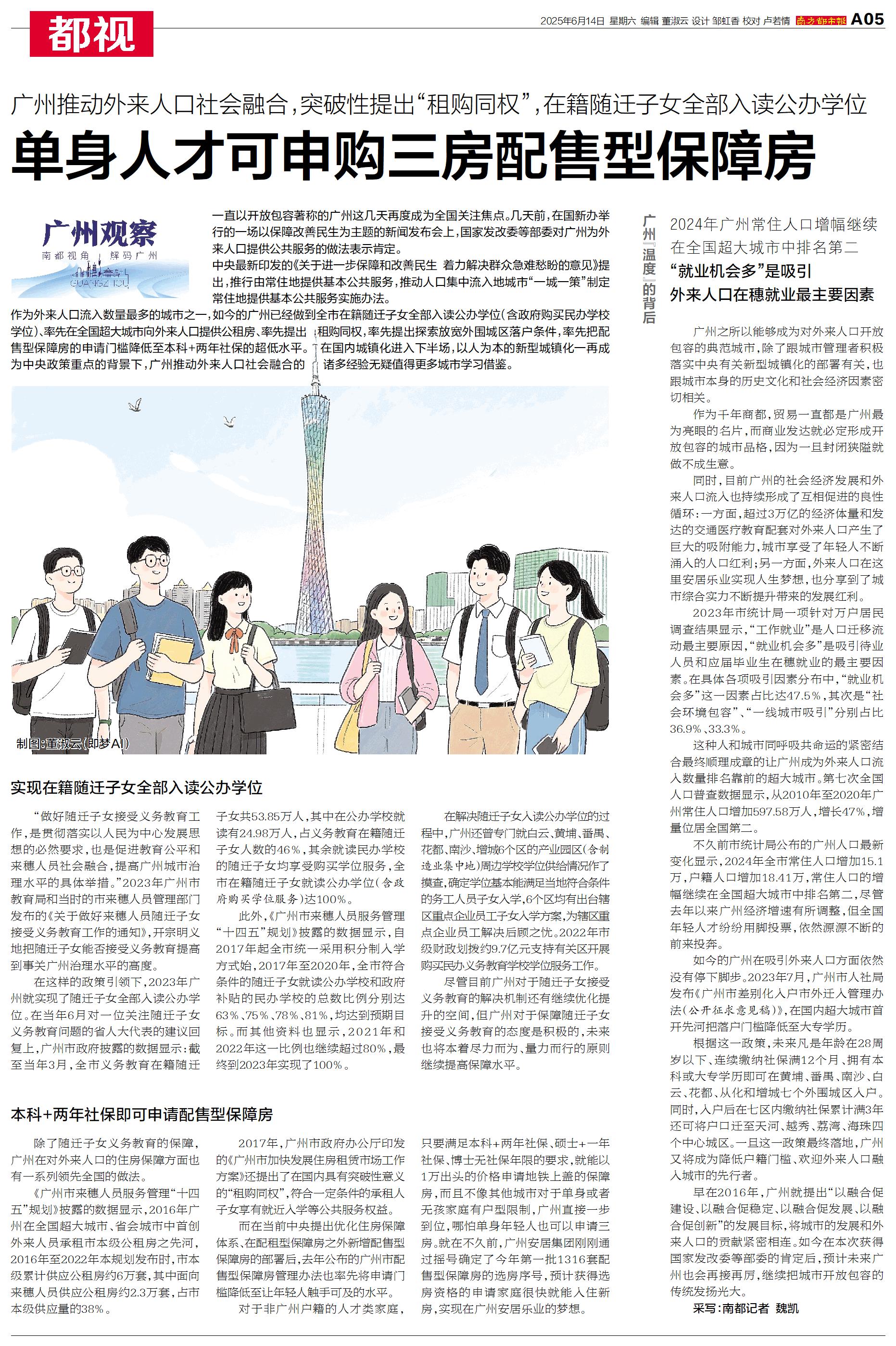 几天前,在国新办举行的一场以保障改善民生为主题的新闻发布会上,国家发改委等部委对广州为外来人口提供公共服务的做法表示肯定。