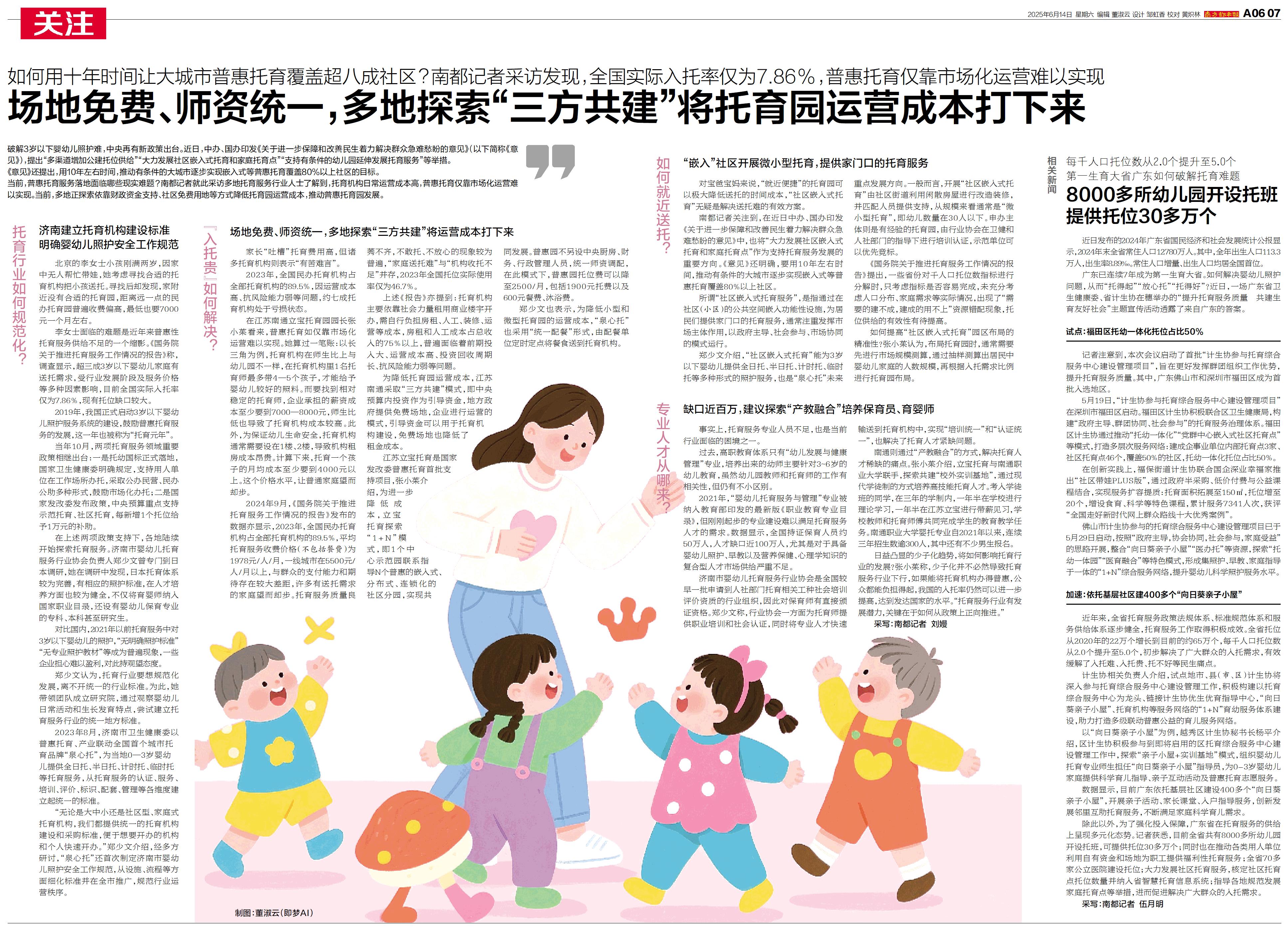 场地免费、师资统一,多地探索“三方共建”将托育园运营成本打下来
