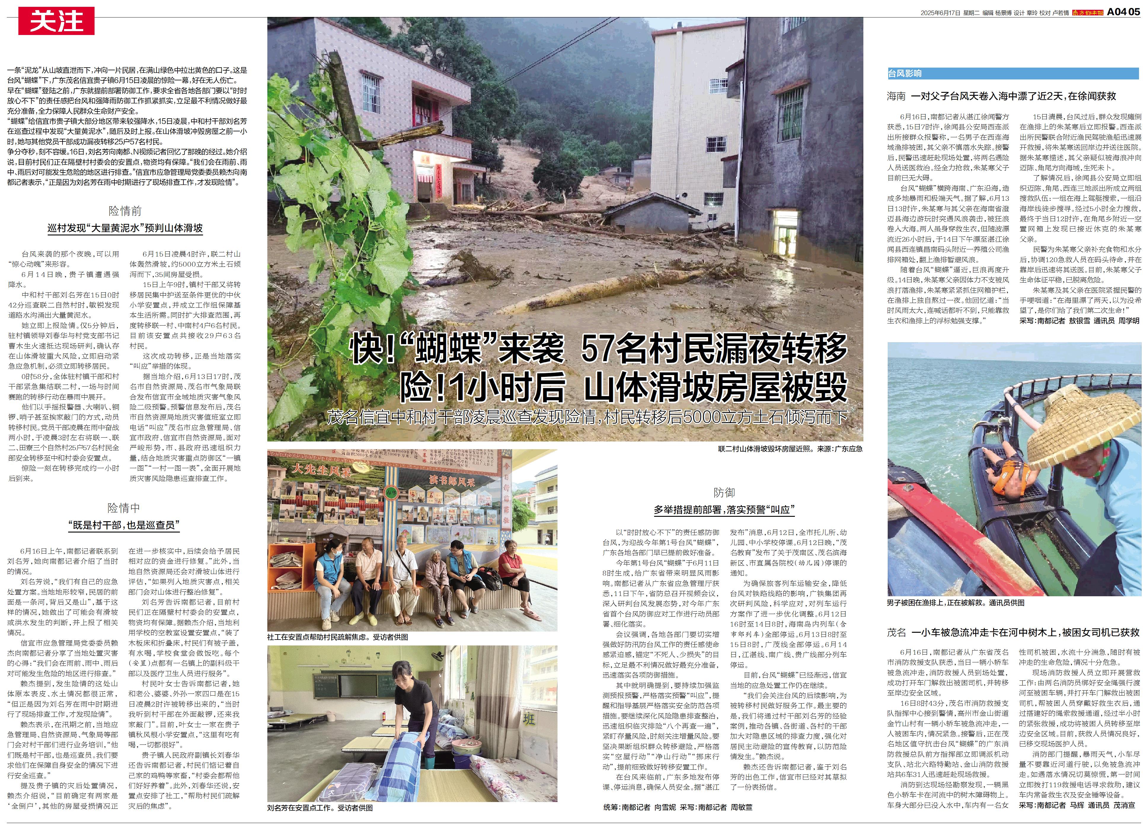 快!“蝴蝶”来袭 57名村民漏夜转移 险!1小时后 山体滑坡房屋被毁