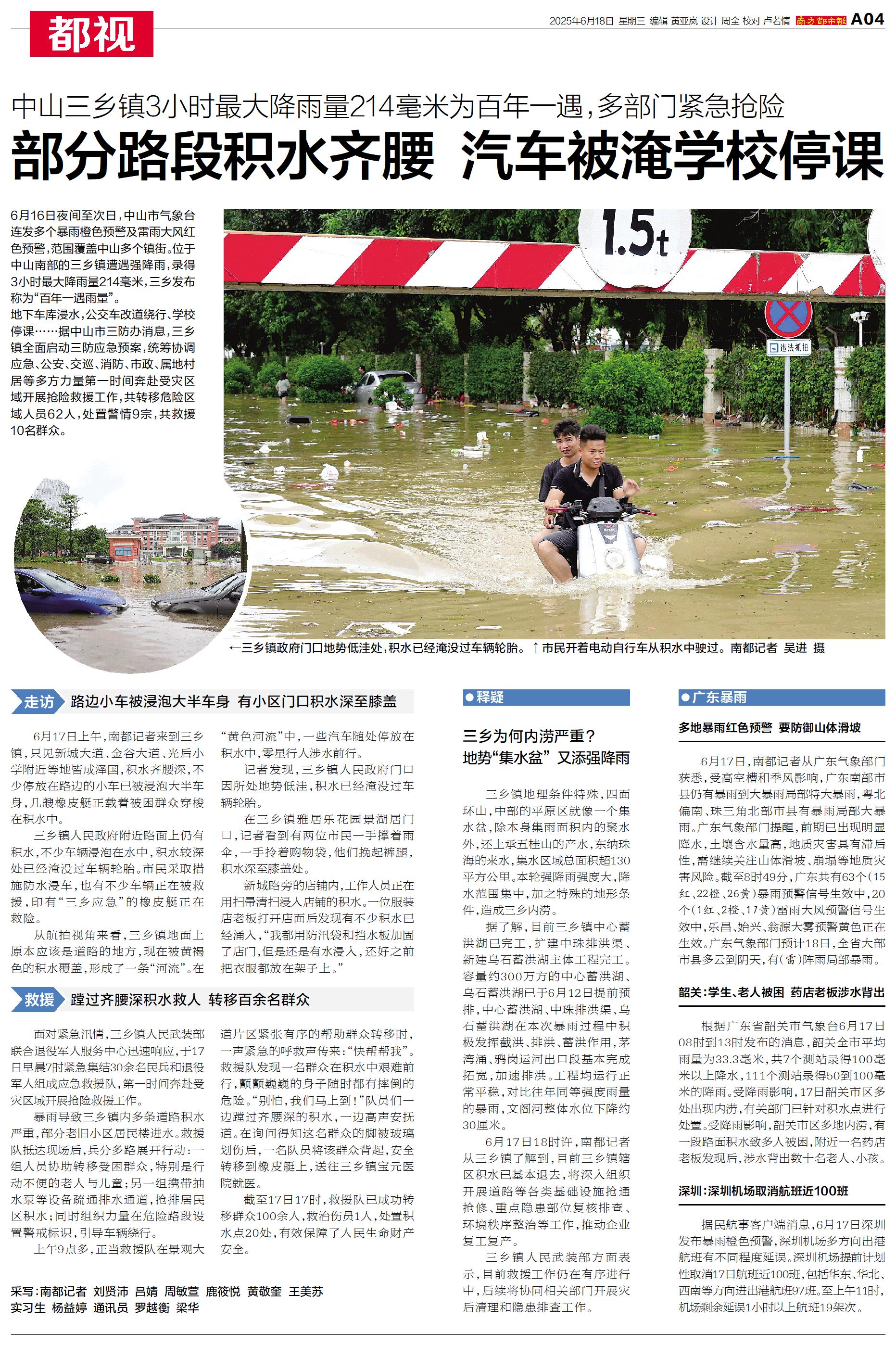 6月16日夜间至次日,中山市气象台连发多个暴雨橙色预警及雷雨大风红色预警,范围覆盖中山多个镇街。