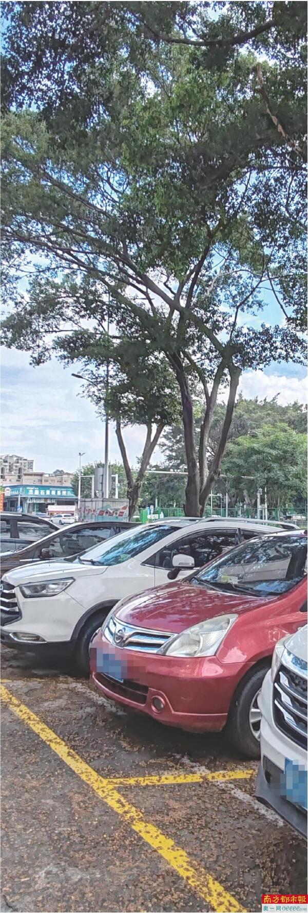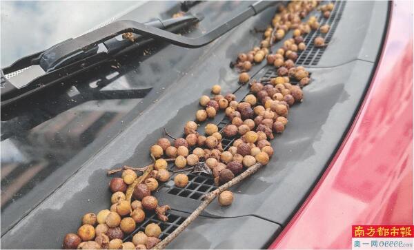 该停车场旁一家广告店工作人员周女士告诉南都记者,树上的果子每年都会掉落,“今年特别多”。