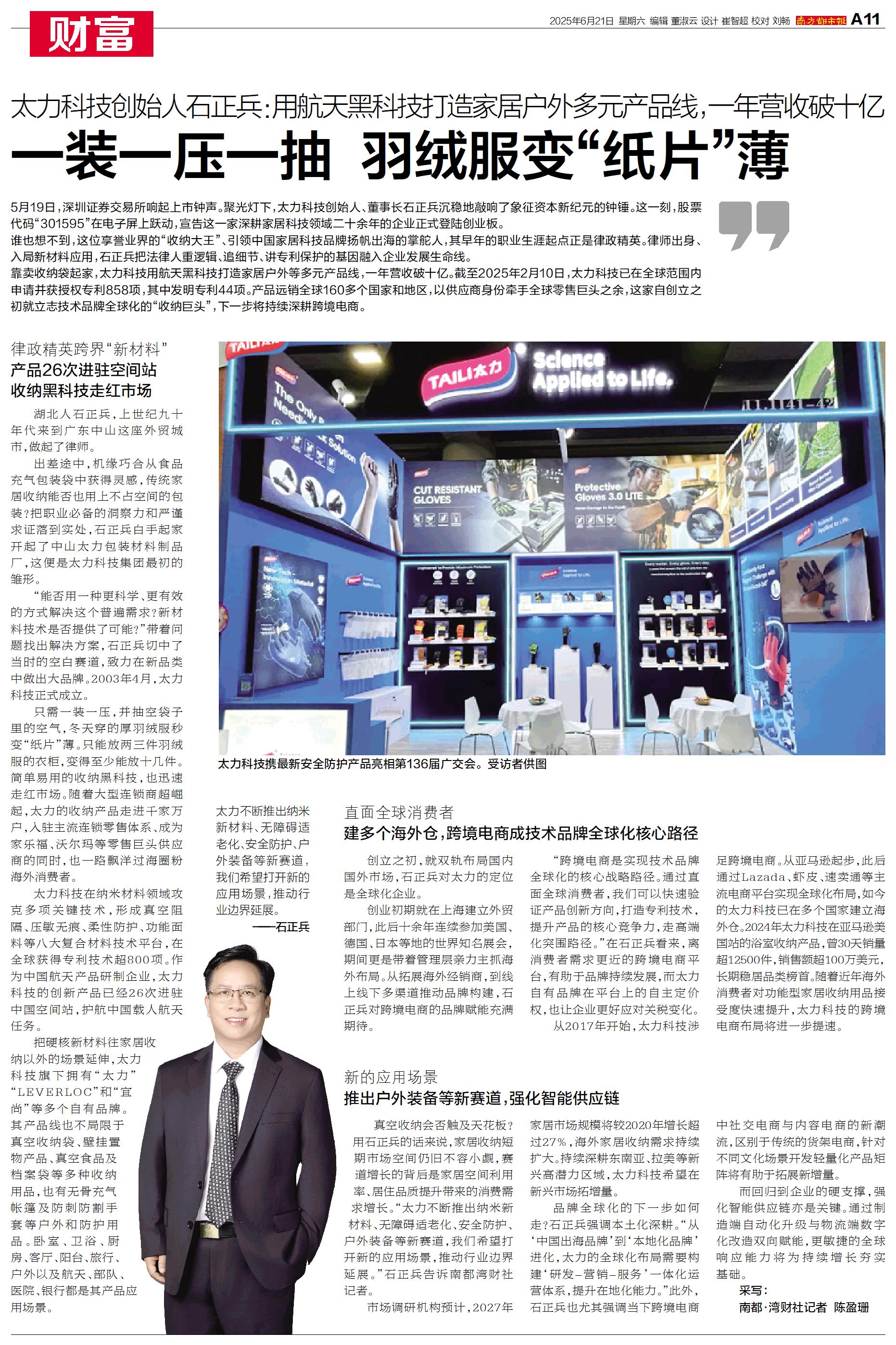 5月19日,深圳证券交易所响起上市钟声。聚光灯下,太力科技创始人、董事长石正兵沉稳地敲响了象征资本新纪元的钟锤。