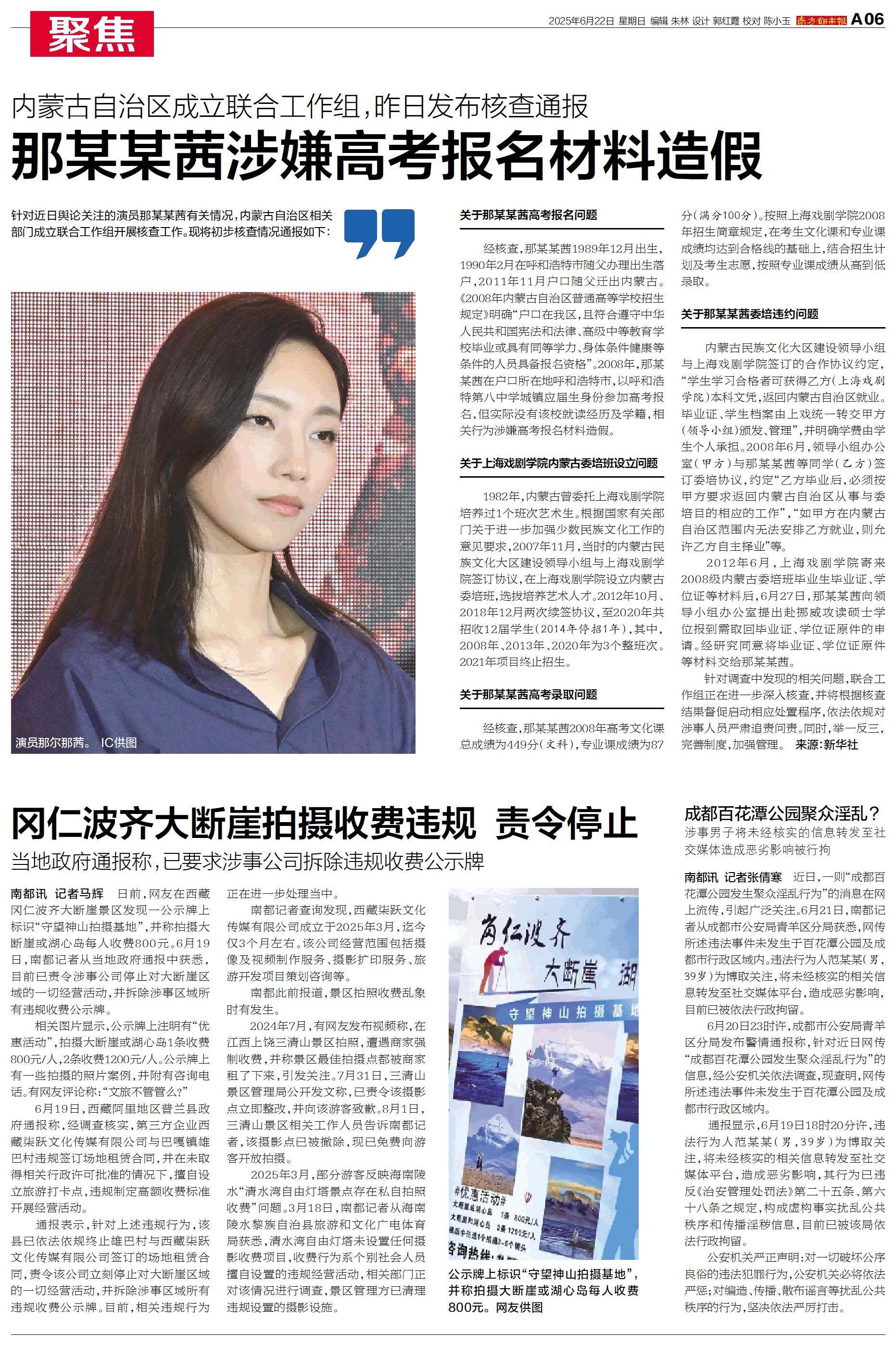 针对近日舆论关注的演员那某某茜有关情况,内蒙古自治区相关部门成立联合工作组开展核查工作。