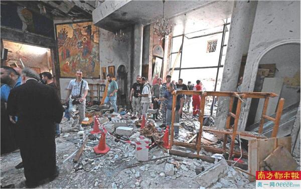 6月22日,人们在叙利亚大马士革东部发生袭击事件的教堂内查看。 新华社发