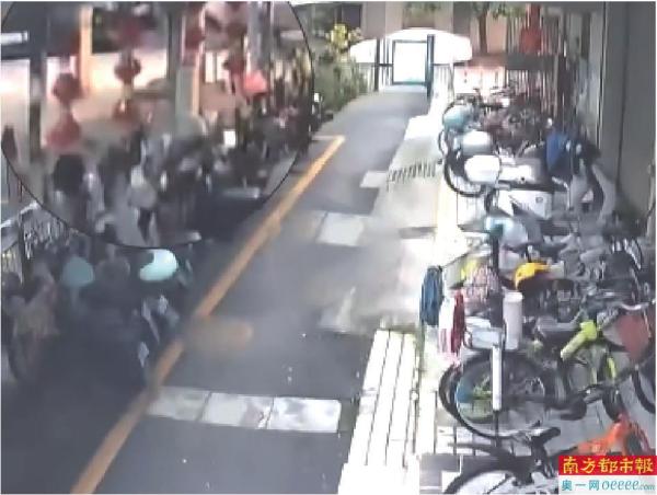 据网友发布的多个监控视频记录清远震时画面:车棚挂饰明显晃动,单车未倒。