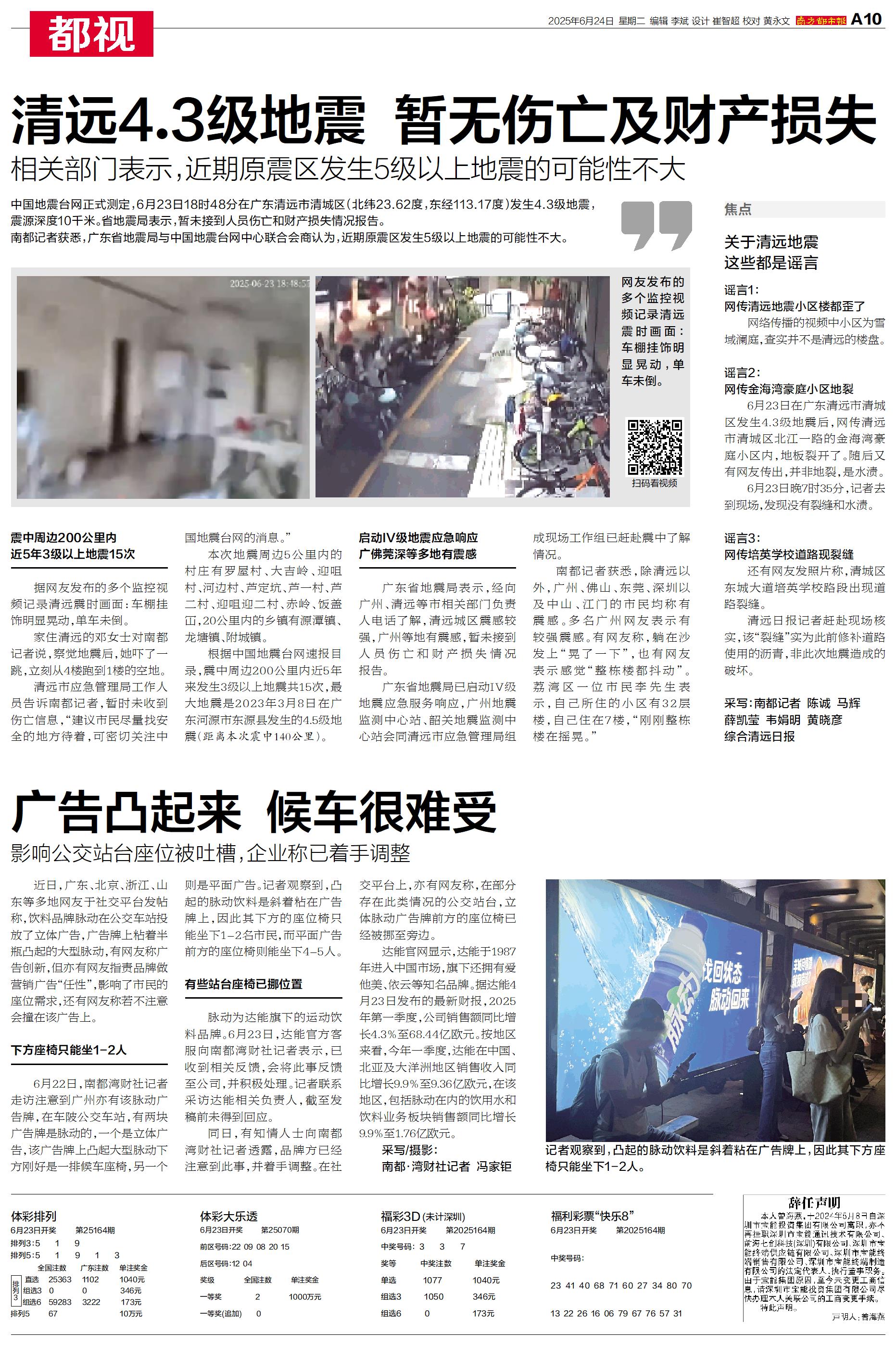 中国地震台网正式测定,6月23日18时48分在广东清远市清城区(北纬23.62度,东经113.17度)发生4.3级地震,震源深度10千米。