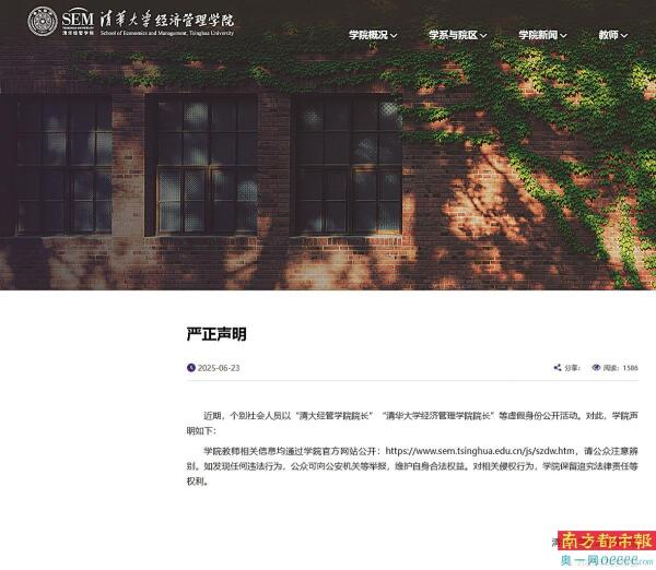 6月23日,清华大学经管学院发布关于“个别社会人员以‘清大经管学院院长’‘清华大学经济管理学院院长’等虚假身份公开活动”的声明,称学院官方网站有公开教师相关消息,对侵权行为,学院保留追究法律责任等权利。