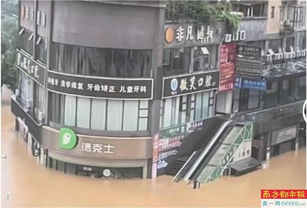 “常驰广场负一楼是合力超市,已经彻底被淹,一楼马路的店面也没有幸免。”石小姐的水果店与常驰广场相隔一条马路,水果店负二楼和负一楼分别是员工宿舍和仓库。