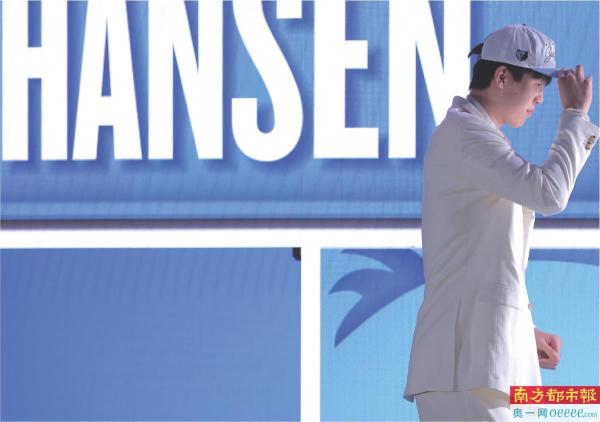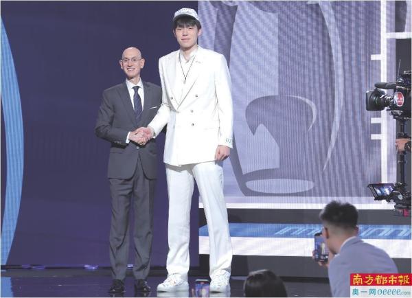 被开拓者队选中后,杨瀚森按照流程在后台参与NBA新秀的签约、拍照以及采访等活动。