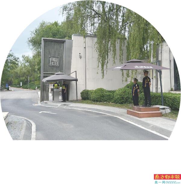 君山小区大门口,两个物管公司的保安同时在此站岗。