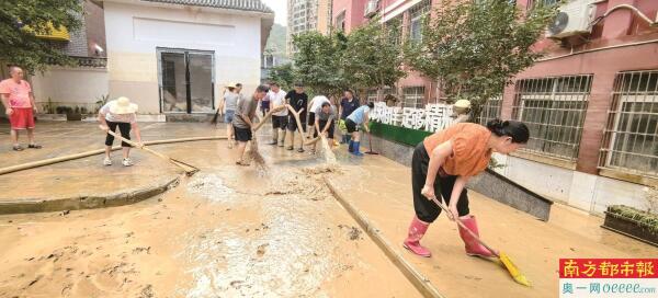26日,南都记者在街上看到,洪水给这座小城留下一片狼藉,淤泥遍布,只能穿着雨鞋出行,从各地赶来的大型救援车辆来来往往。