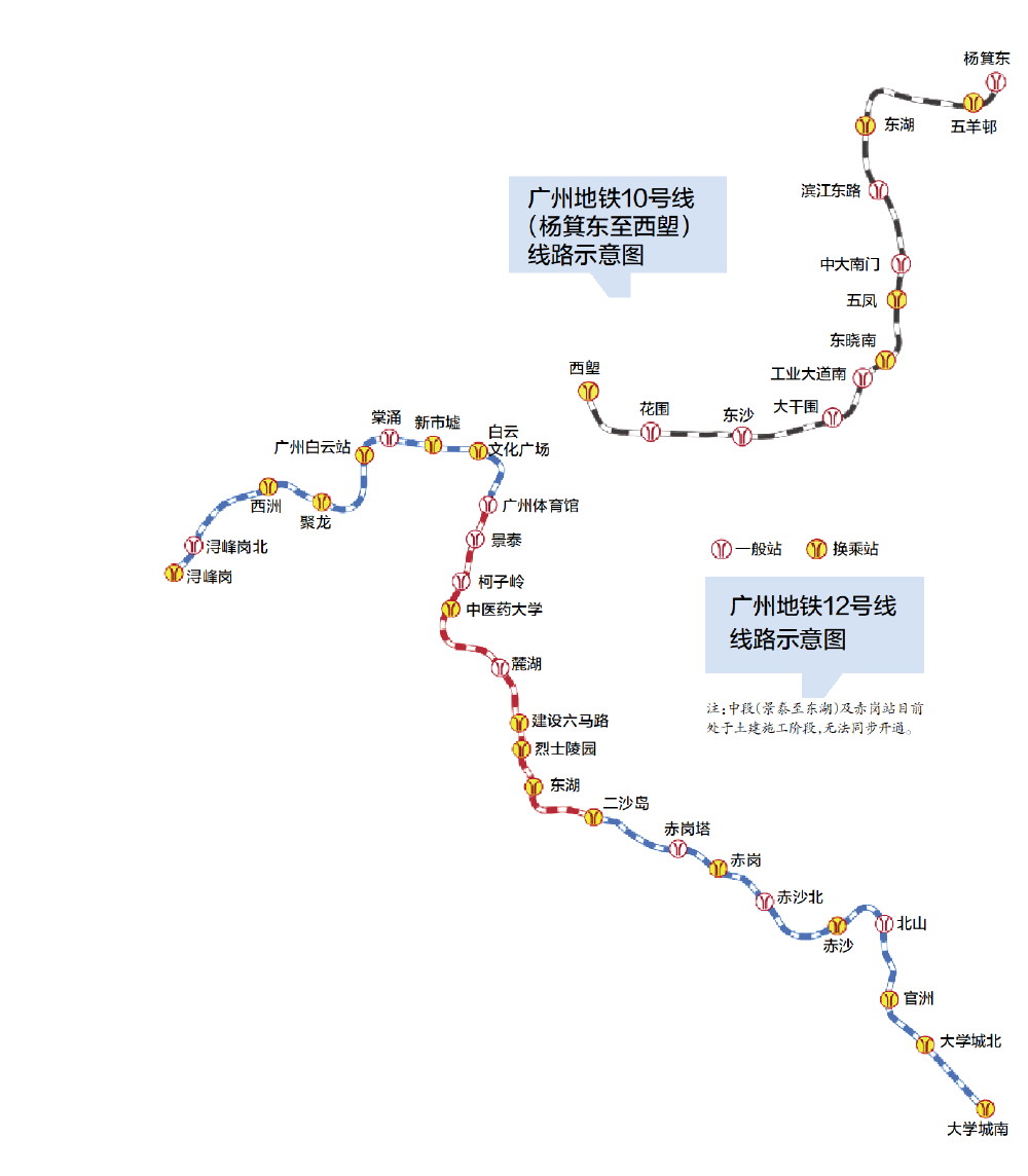日前,记者从广州地铁集团获悉,广州地铁十号线(杨箕东至西塱)、十二号线(“西段”浔峰岗至广州体育馆、“东段”二沙岛至大学城南)顺利完成了项目建设与验收工作,通过初期运营前安全评估,定于6月29日14时正式开通初期运营。