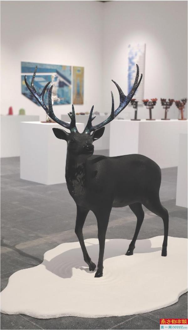 在毕业展上,就读工艺美术(漆艺)专业的许志聪的漆艺作品《呦呦鹿鸣》也受到了关注。许志聪说,有几个藏家和美术馆都有意向收藏。