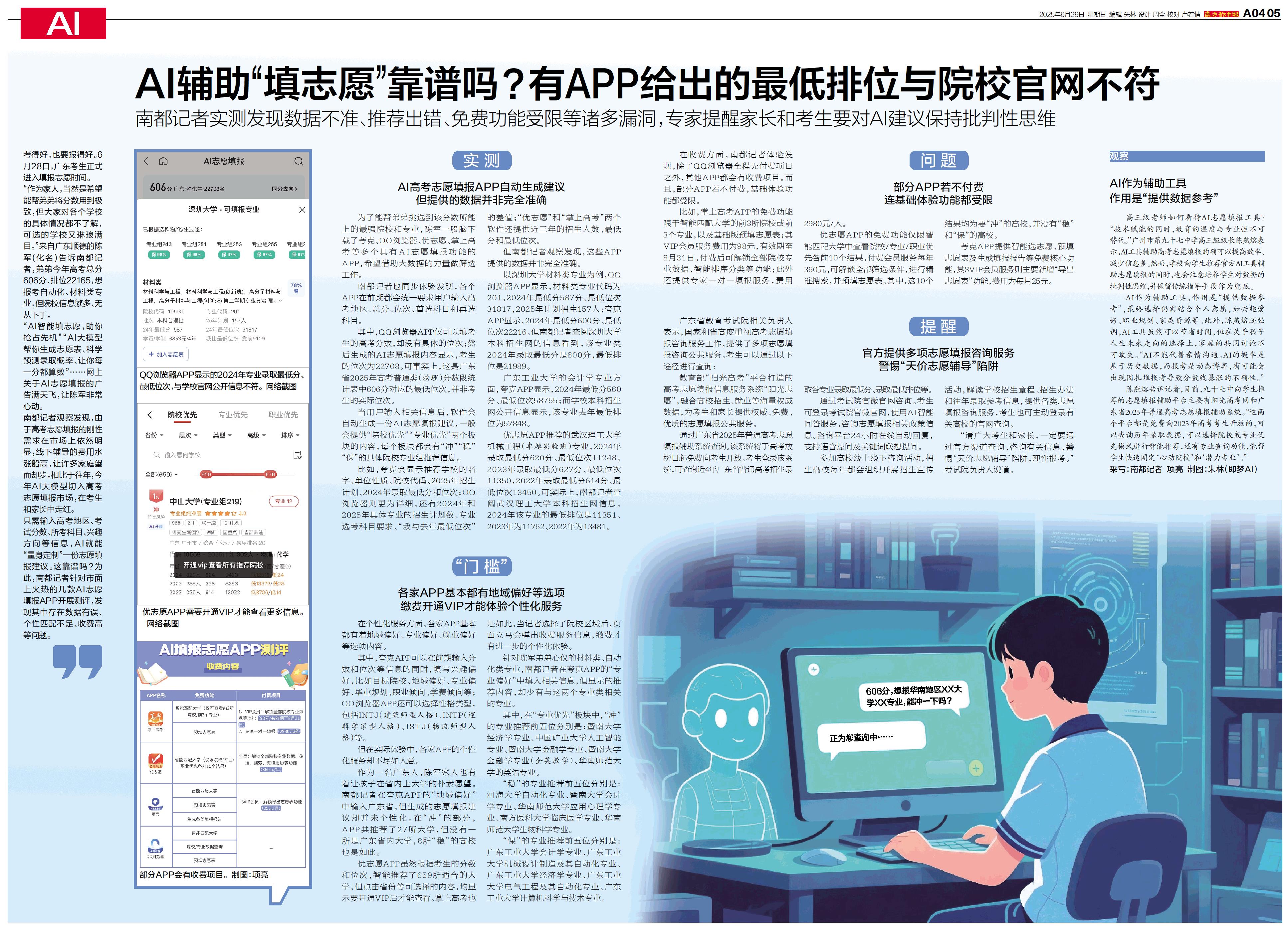 AI辅助“填志愿”靠谱吗?有APP给出的最低排位与院校官网不符