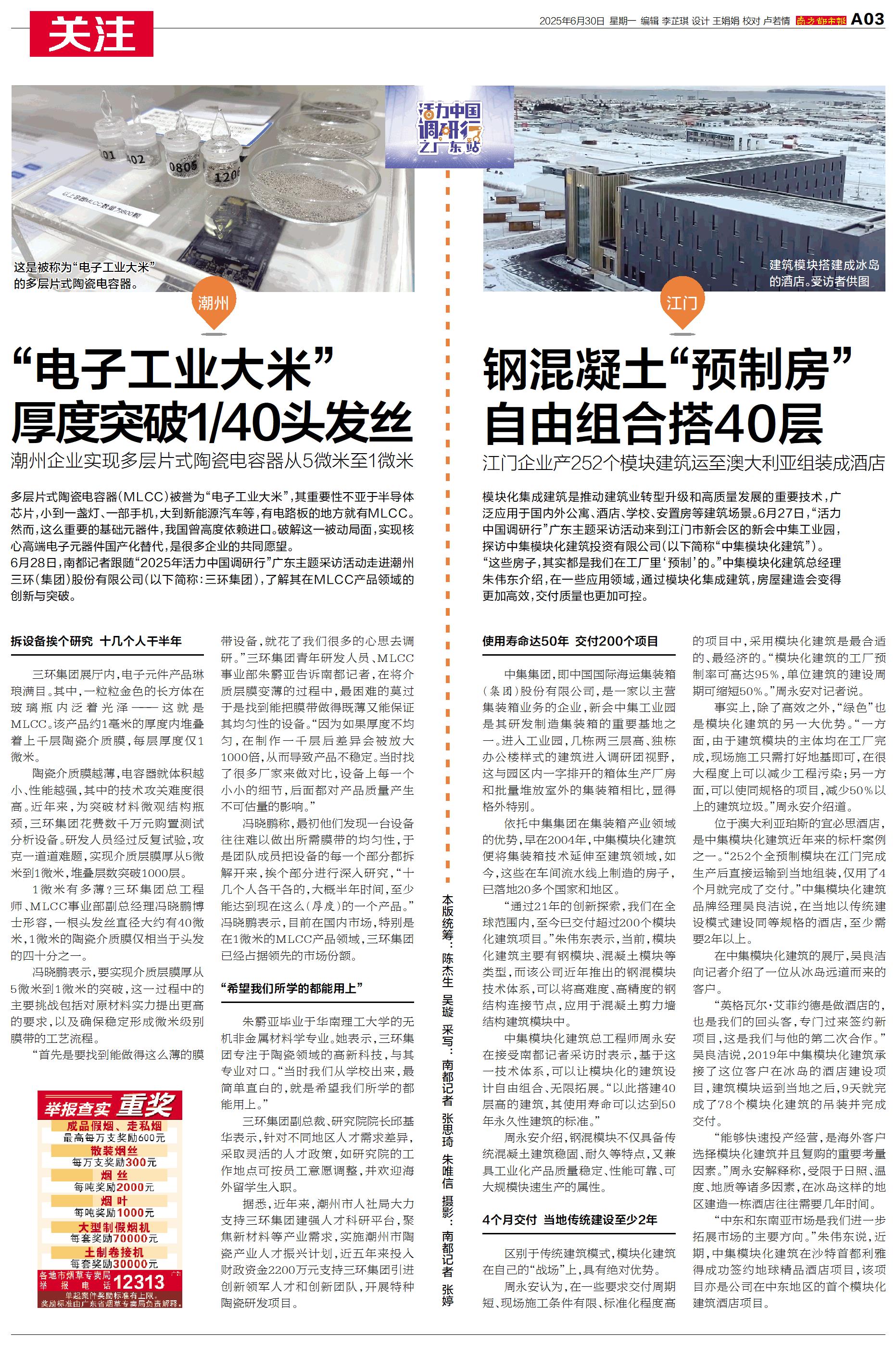 模块化集成建筑是推动建筑业转型升级和高质量发展的重要技术,广泛应用于国内外公寓、酒店、学校、安置房等建筑场景。6月27日,“活力中国调研行”广东主题采访活动来到江门市新会区的新会中集工业园,探访中集模块化建筑投资有限公司(以下简称“中集模块化建筑”)。