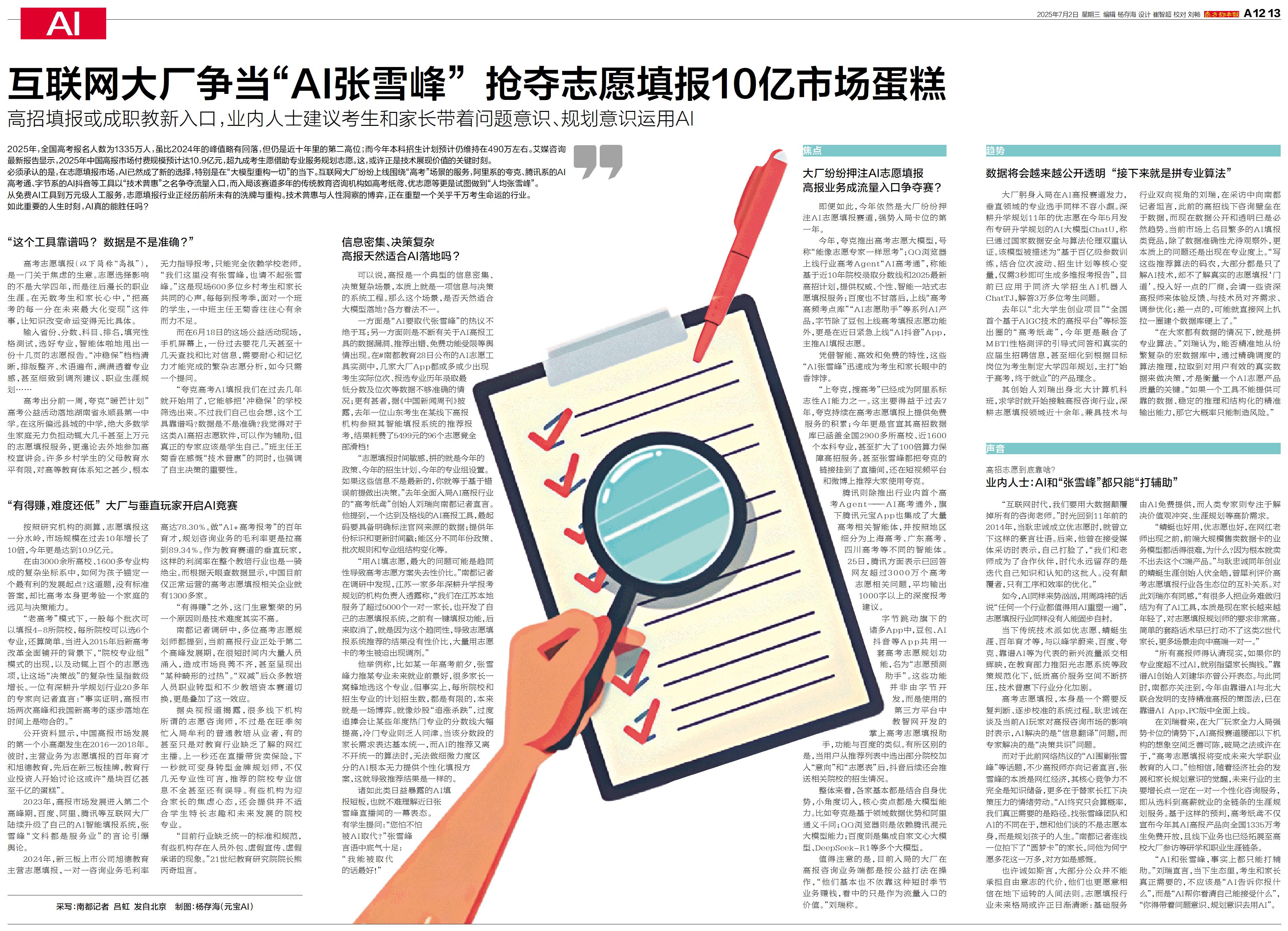 高招志愿到底靠啥? 业内人士:AI和“张雪峰”都只能“打辅助”