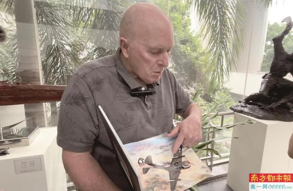 飞虎队老兵后代克利福德·雷·朗向南都记者展示一本从美国带来的老相册。