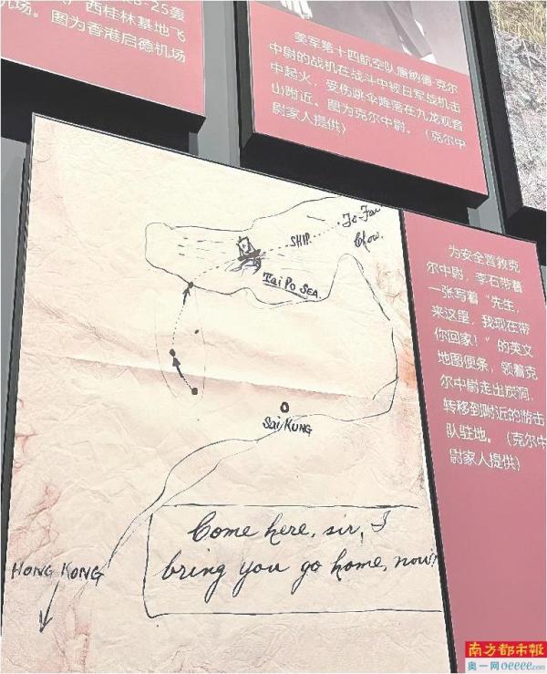 “先生,来这里,我现在带你回家!”格林向现场的来宾朗读了东江纵队港九独立大队交通员李石写给克尔中尉的一张英文地图便条,正是这张便条帮助克尔安全转移到了附近的游击队驻地。