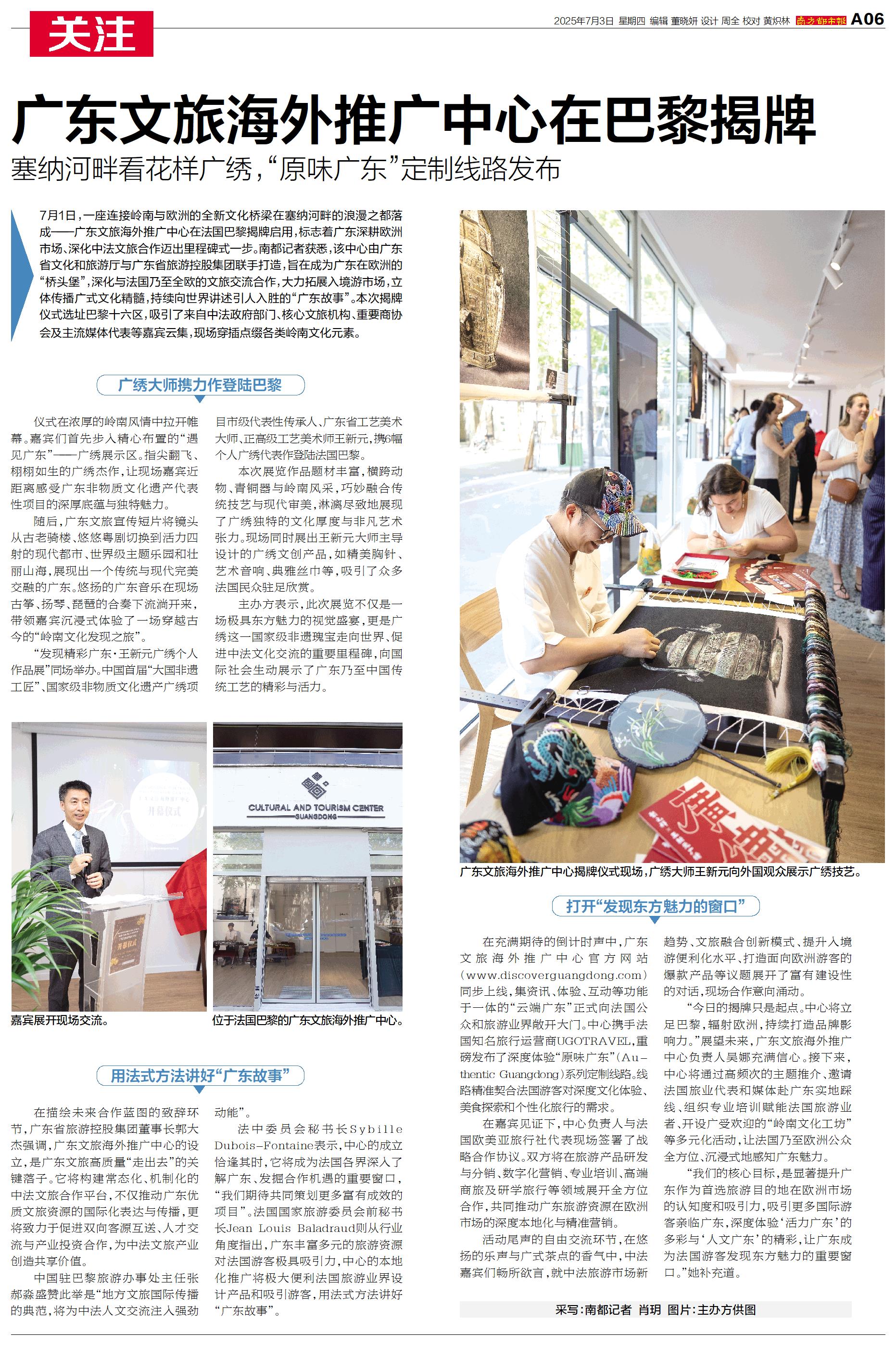 7月1日,广东文旅海外推广中心在法国巴黎揭牌启用,标志着广东深耕欧洲市场、深化中法文旅合作迈出里程碑式一步。
