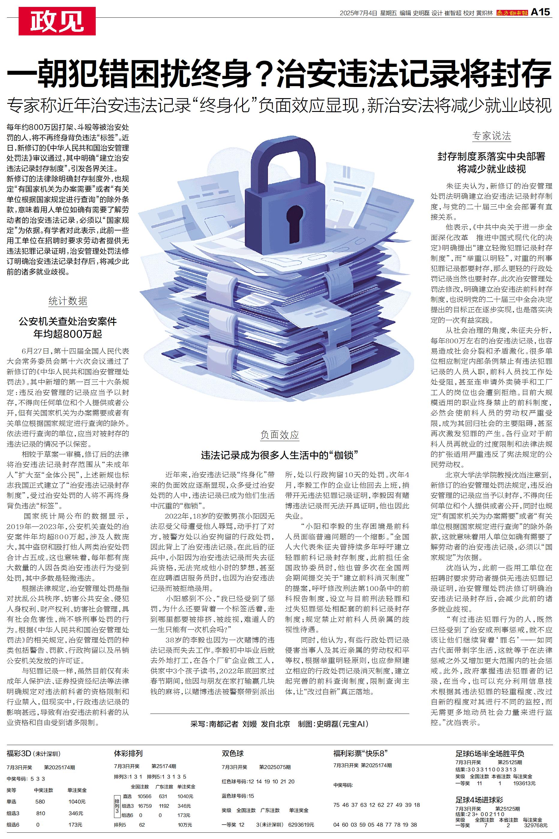 近日,新修订的《中华人民共和国治安管理处罚法》审议通过,其中明确“建立治安违法记录封存制度”,引发各界关注。