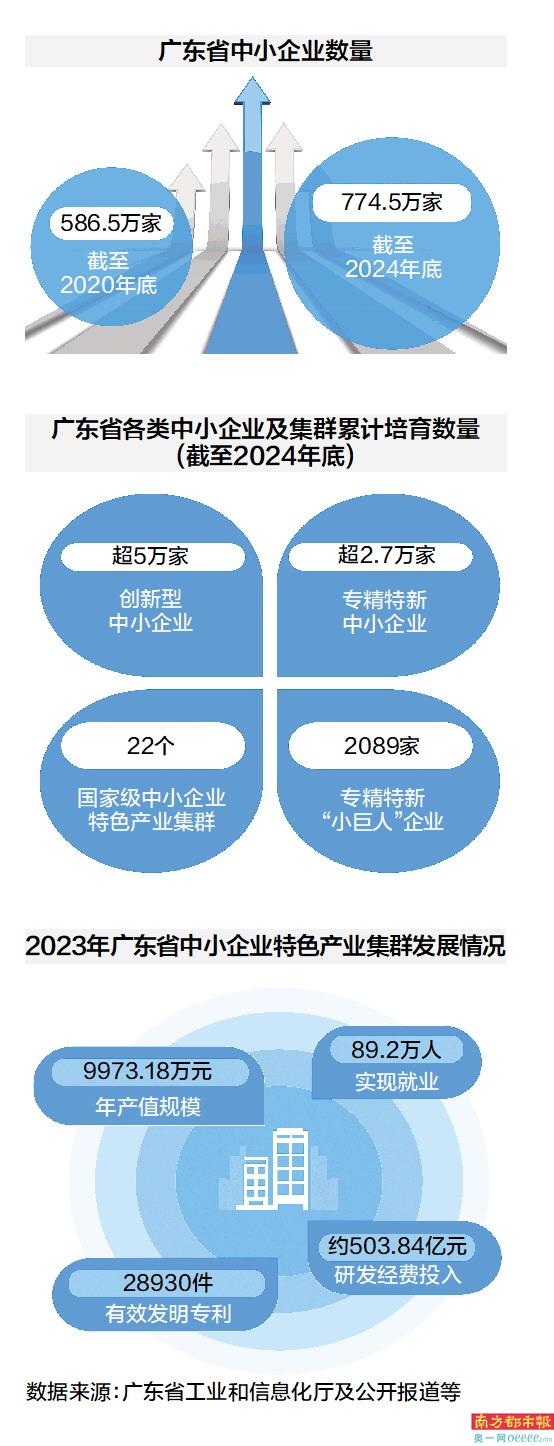 纵观一条条产业链,数量庞大的中小企业分布广泛,扎根于千行百业。数据显示,截至2024年年底,广东共有企业835.71万家。其中,中小企业数量达774.5万家,占全省企业总量的90%以上。它们既在传统产业中精耕细作,推动着衣食住行等基础领域的持续发展;又积极投身于新兴产业、未来产业,成为新动能培育的重要力量。