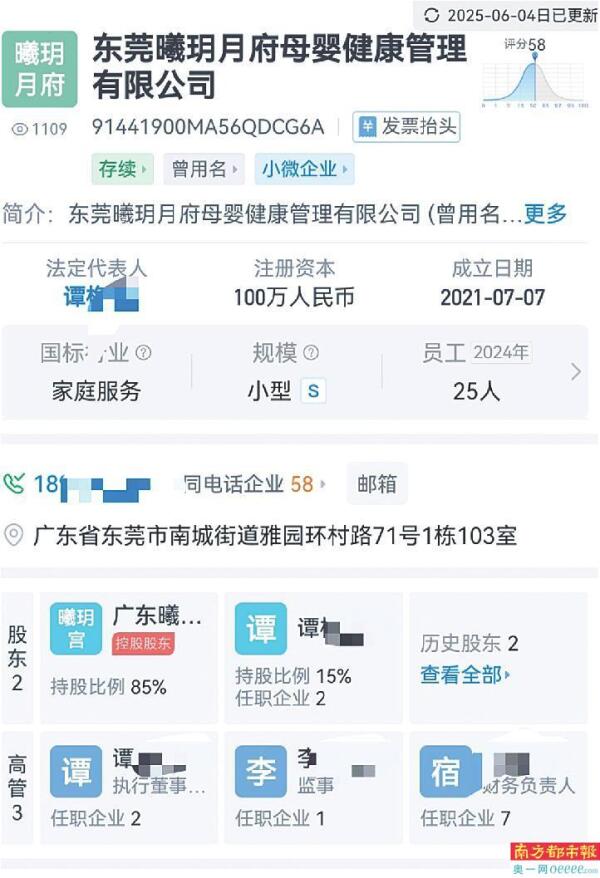 7月2日,因拖欠员工工资超34万且拒不执行整改指令,东莞曦玥月府母婴健康管理有限公司被东莞市人力资源和社会保障局(以下简称“东莞人社局”)依法处以1万元行政处罚。值得提及的是,南都记者留意到,在东莞曦玥月府母婴健康管理有限公司被曝欠薪之时,其母公司广东曦玥宫母婴健康实业投资有限公司却连开两家新店。