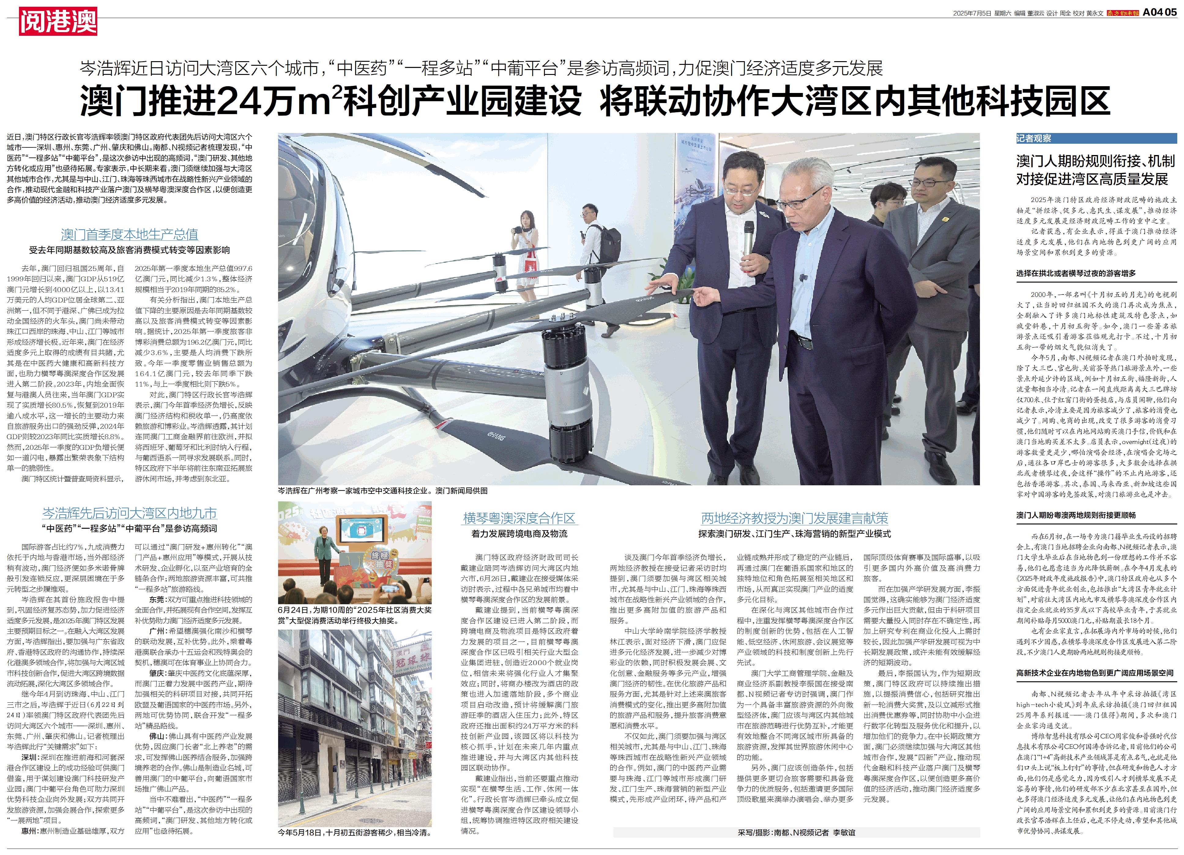 澳门推进24万㎡科创产业园建设 将联动协作大湾区内其他科技园区