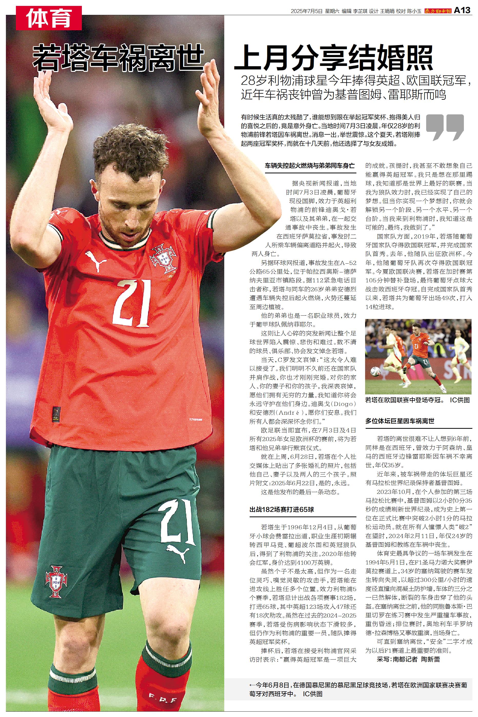 当地时间7月3日凌晨,年仅28岁的利物浦前锋若塔因车祸离世。消息一出,举世震惊。