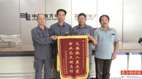 6月30日,被救老人的家属符启林带着一面锦旗来到南方电网广东云浮云安供电局高村供电所,以表达对许明州和李河新的感谢。符启林介绍,其母时年88岁因中风多年,双腿无法行走。“要不是许师傅他们,我母亲可能就……多亏了他们的及时救助。”