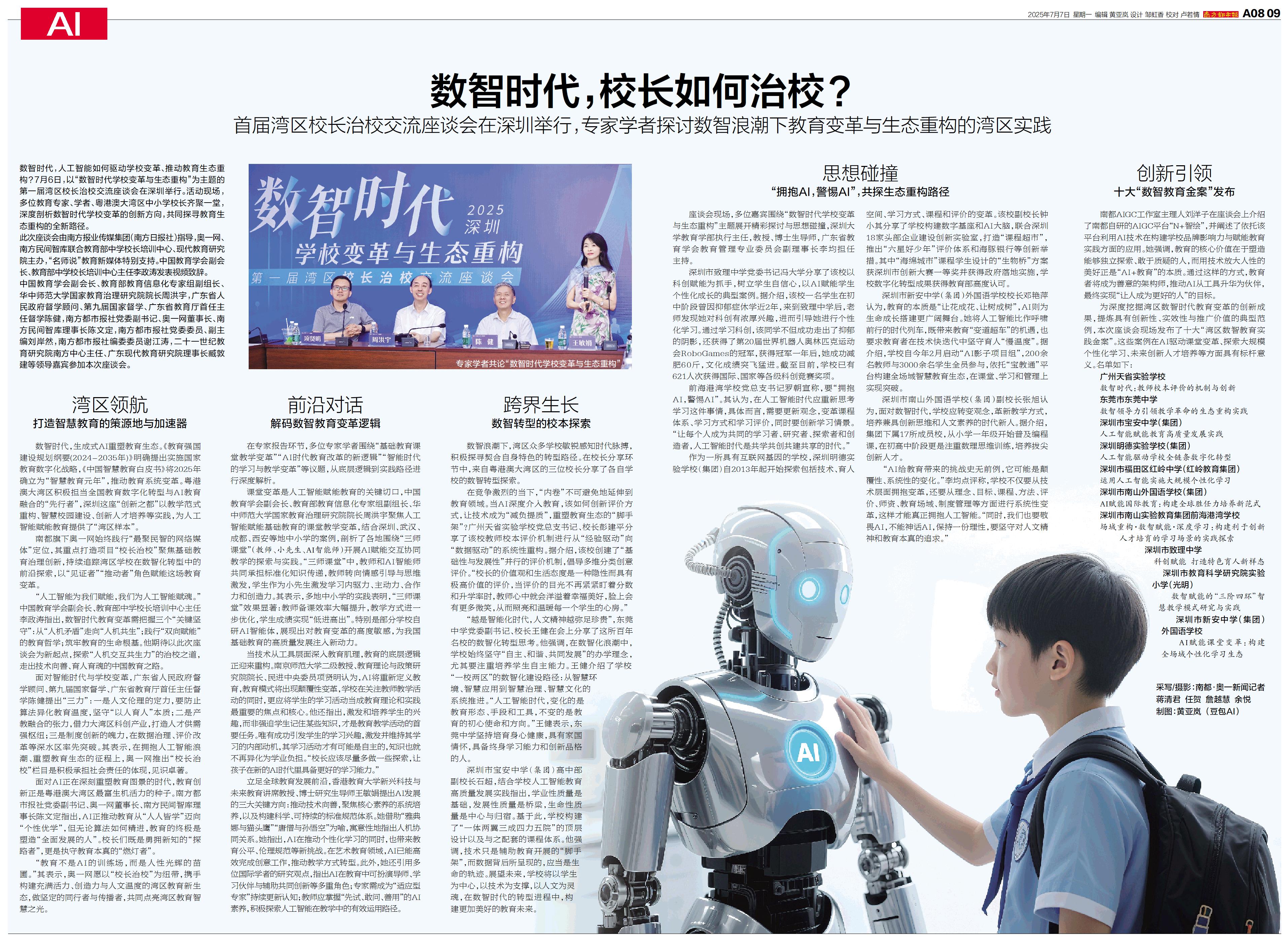 7月6日,以“数智时代学校变革与生态重构”为主题的第一届湾区校长治校交流座谈会在深圳举行。