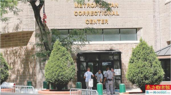 2019年8月12日,安保人员站在曾关押爱泼斯坦的美国纽约大都会惩教中心门前。 新华社资料图