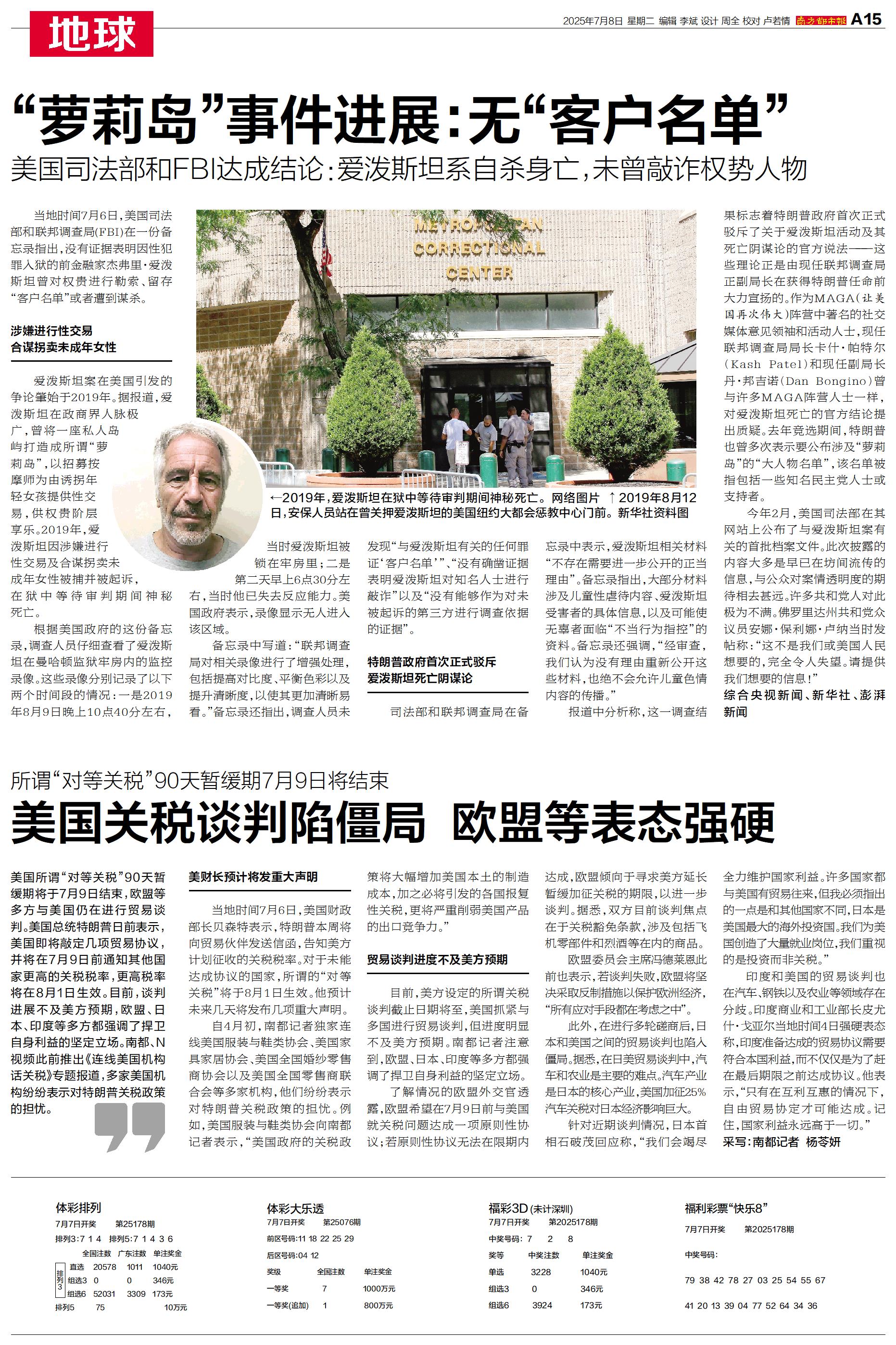 当地时间7月6日,美国司法部和联邦调查局(FBI)在一份备忘录指出,没有证据表明因性犯罪入狱的前金融家杰弗里·爱泼斯坦曾对权贵进行勒索、留存“客户名单”或者遭到谋杀。