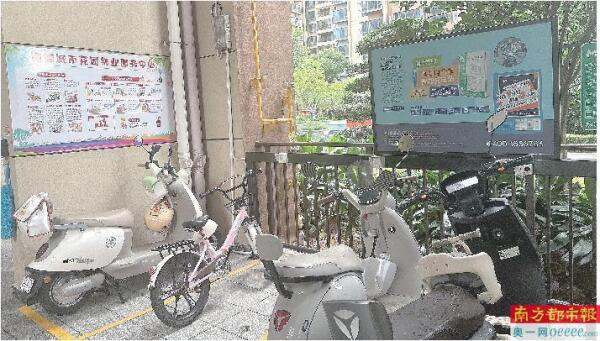 中信阳光澳园小区充电停放点就在楼栋进出口。