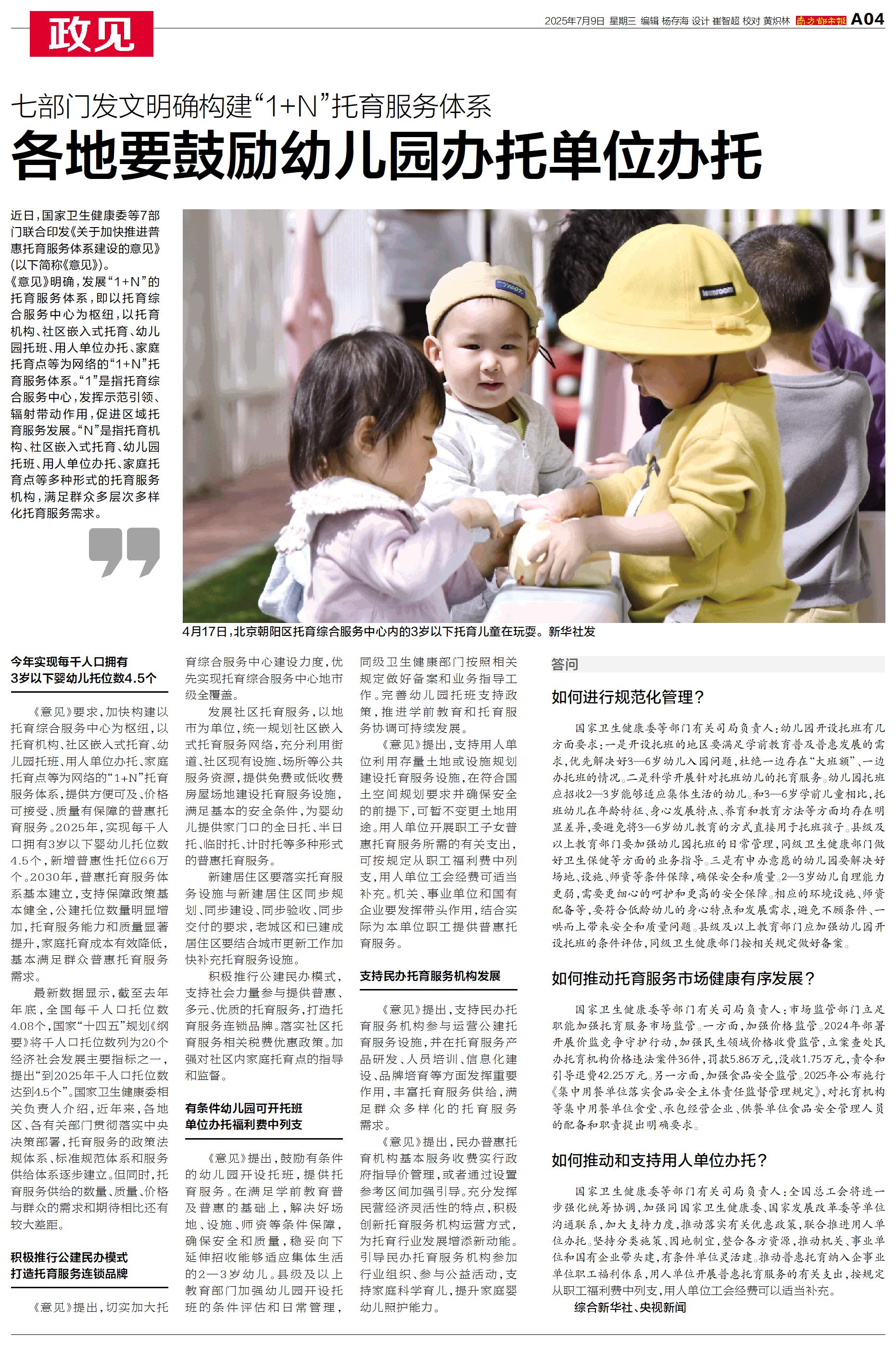 近日,国家卫生健康委等7部门联合印发《关于加快推进普惠托育服务体系建设的意见》。